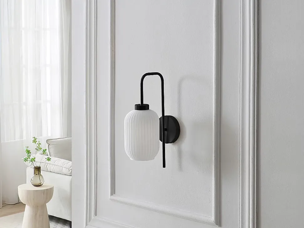- Optez pour l’applique LOUXOR en laiton noire et verre blanc L.25 x H.41 cm pour illuminer vos murs avec élégance et parfaitement – Commandez dès maintenant !
