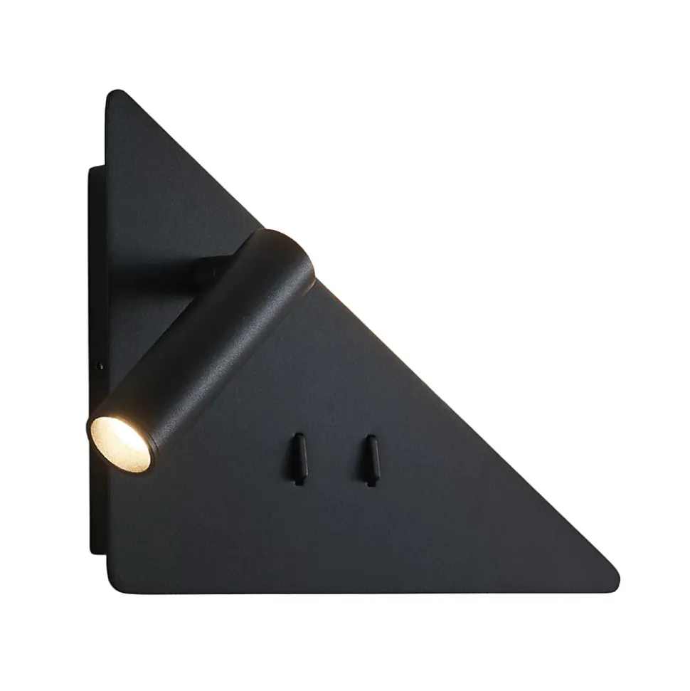 Elaris type B conserve le style géométrique distinctif du modèle avec son triangle en métal noir et sa liseuse LED ajustable. Ce modèle positionne l’angle droit à gauche, offrant une configuration idéale pour compléter le type A dans un agencement miroir. Équipée de deux interrupteurs indépendants, elle permet un contrôle individuel de la liseuse et de l’éclairage d’ambiance LED. À installer seule ou en paire avec le type A pour un effet visuel symétrique.) Livré monté, prêt à installer (
