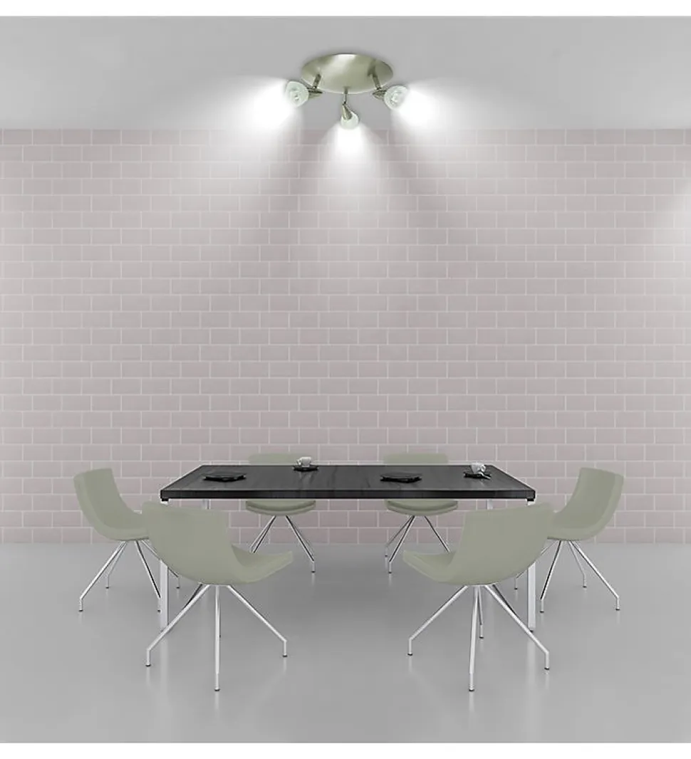 Applique murale ou Plafonnier 3 Spots orientables 3 x 50 W MIRAGE AE1561136 – Acier brossé – Ampoules fourniesGrâce au design de ce Plafonnier et ses 3 Spots orientables vous offrirez à votre intérieur un style contemporain et élégantCompatible avec les ampoules LED, halogène, fluocompact, économie d’énergie. Descriptif :Marque : XELUX Modèle : AE1561136 MIRAGECouleur : Acier brosséType : Plafonnier ou applique murale 3 SpotsDimensions (diam) : 265 mmFinitions diffuseurs : Mirage (verre trempé)Diamètre diffuseur : 60 mm Type d’ampoule : EXN 12 V (Halogènes)Puissance max : 3 x 50 W Tension : 230 V – 50. HzCompatible avec LED et ampoules à économie d’énergie Normes et sécurité : CE – F Contenu : – 1 Plafonnier 3 Spots – Accessoires de fixation – 1 notice d’utilisation – 3 Ampoules Les plus produits : Le Plafonnier en acier brossé 3 Spots conviendra parfaitement à toutes les pièces de votre habitat.Que vous souhaitiez l’installer au mur ou au plafond il apportera une touche design à votre intérieur.Ses Spots orientables et inclinables vous permettront d’ajuster l’éclairage selon vos besoins. Grâce à leur puissance elles vous assureront une répartition de lumière optimale.Compatible LED pour une durée de vie des ampoules plus longue et une économie d’énergie plus importante. Facile à poser, ce Plafonnier 3 Spots orientables allie sécurité et robustesse.