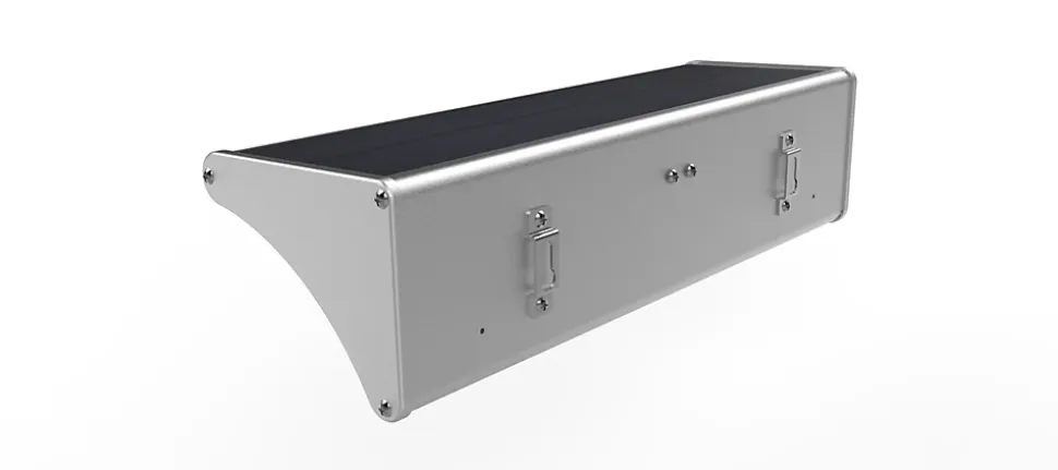 Applique solaire avec détecteur de mouvement IP65. Couleur(s) : blanc. Classe énergétique A++. Matériau : aluminium. Puissance 8.1W. Intensité lumineuse : 1100lm. Capacité de charge : 6000 mah. Indice de protection : IP65. Dimensions(L x l x h) : 30.5 cm x 11 cm x 8 cm
