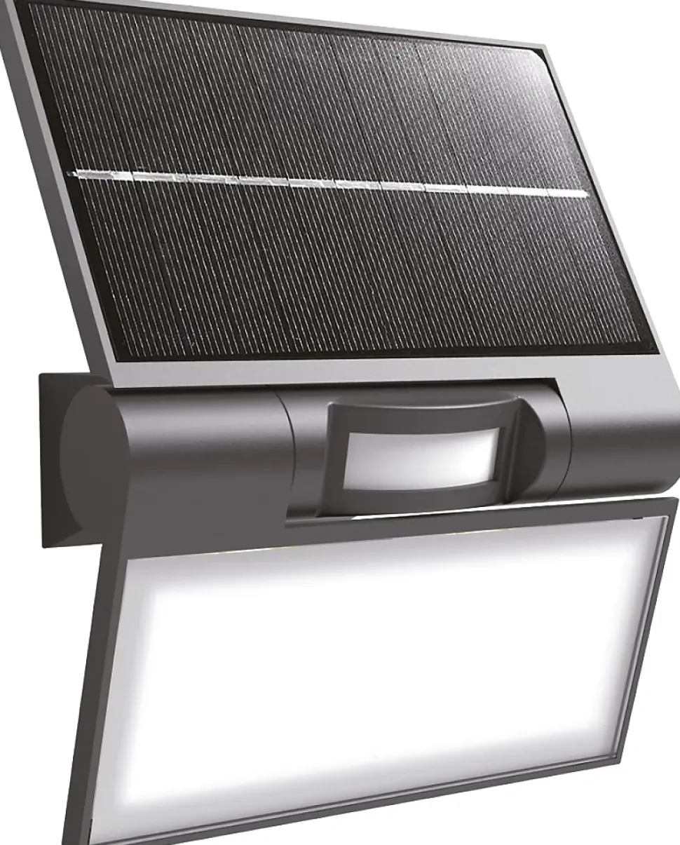 Applique solaire + détecteur de mouvement. Couleur(s) : noir. Classe énergétique A++. Puissance : 8W. Intensité lumineuse : 400lm. Température de couleur : 6500K. Indice de protection : IP44. Dimensions (L x l x h) :12 x 0.55 x 8.5 cm