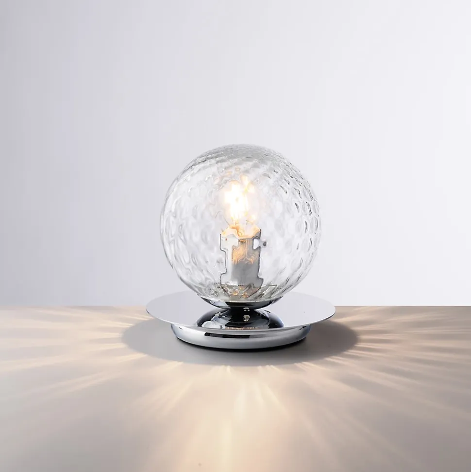 Armonia – Lampe de table 1 lumière en fer chromé poli Dimensions du produit : H.17 – Ø16Nombre d’ampoules : 1xE14Puissance : 42 watts maximumFinition : Chrome poliCe produit est fabriqué artisanalement. De légères imperfections visuelles sont considérées comme des caractéristiques naturelles du travail manuel