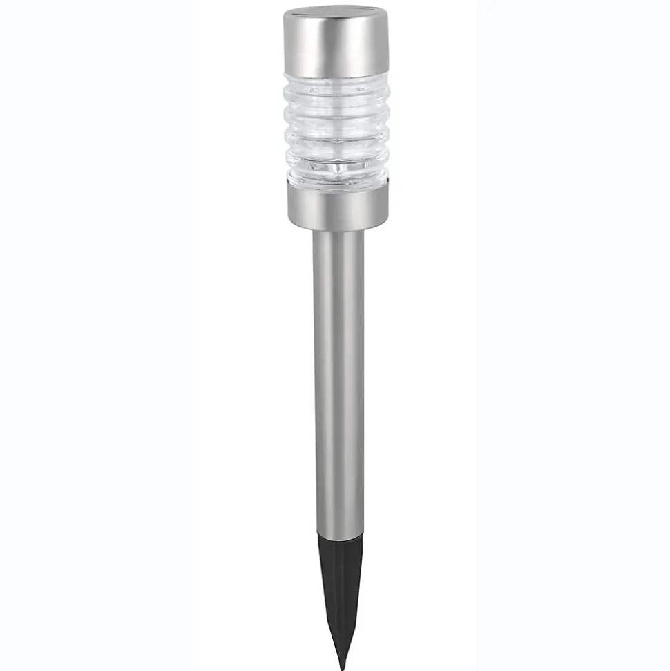 Balise à énergie solaire2 types d’utilisation : à planter dans le sol / à poserMatière : inox / diffuseur en verre Nombre de Lumens : 10Durée maximum d’éclairage : 8 heures LED : 1 LED blanche – 0,2WBatteries rechargeables : 1 x 600mAh Ni-Mh AADimensions produits : (voir le schéma technique parmi les images)H : 570 / 425 mm – Ø 76 mm
