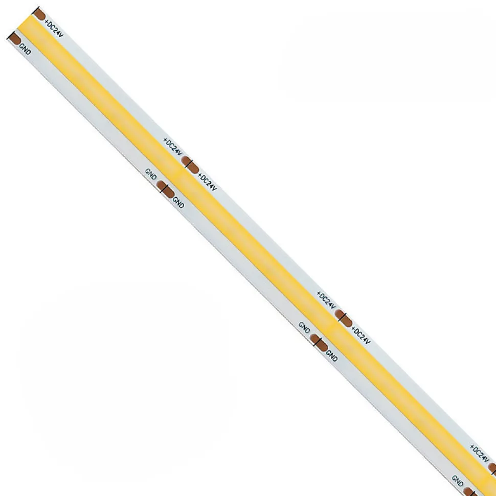 Bande LED COB monochromatique de 5 m, 15 watts/mètre, connexion 12 V. Excellente luminosité.La bande LED COB monochrome est une bande LED de nouvelle génération, en effet elle permet d’avoir une seule ligne de lumière, éliminant les > gênants pour l’œil. La bande LED COB monoculaire est disponible en trois couleurs de lumière : bande LED COB à lumière chaude (3000K), bande LED COB à lumière naturelle (4000K) et bande LED à lumière froide (6500K). Cette réglette LED possède un angle d’ouverture de lumière grâce auquel il est possible d’avoir une lumière à 180°, avec un faisceau assez répandu.Où puis-je placer ma bande LED colorée 15W/m ?Il s’agit d’une bande LED de 15 W/m adaptée à tout type d’application interne ou externe. Cette bande LED avec indice de protection IP65 est pliable et peut être utilisée pour éclairer des environnements résidentiels ou de travail, et est également utilisée pour éclairer les jardins, les parterres de fleurs, les cours et les espaces extérieurs en général.Flux lumineux de la bande LED COB lumière chaude (3000K) : 1300lm/mFlux lumineux de la bande LED COB lumière naturelle (4000K) : 1400lm/mFlux lumineux de la bande LED COB lumière froide (6500K) : 1500lm/mCe modèle de bande LED possède un indice de protection IP65 qui le rend adapté aussi bien à un usage externe qu’interne. La bande LED COB monochrome est alimentée en 12 Volts, elle nécessite donc une alimentation.Chaque bande LED est dimmable, ce qui signifie qu’il est possible de faire varier l’intensité de la lumière avec les contrôleurs avec télécommande appropriés que vous pouvez trouver ICI. La bande LED COB 12V peut être coupée tous les 2,2 cm. Si vous souhaitez faire plus de coupes, vous aurez peut-être besoin de quelques accessoires que vous pouvez trouver ICI