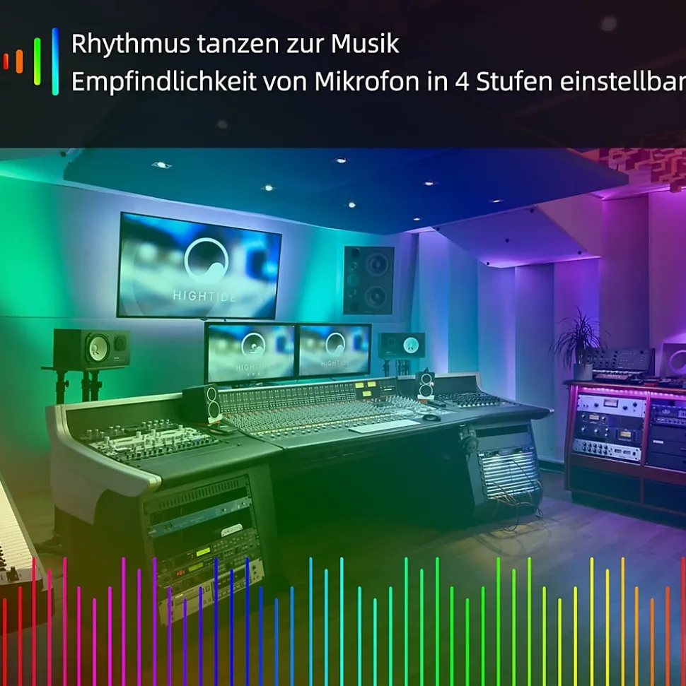 « Double contrôle avec télécommande et application :Contrôlez le ruban LED intelligent de 30 m via l’application « ZENGGE » ou la télécommande incluse. Ce ruban lumineux RGB utilise des LED SMD 5050 de haute qualité ; vous pouvez utiliser l’application ou la télécommande pour contrôler le changement de couleur et la vitesse du ruban lumineux à distance via Bluetooth.Un ruban lumineux au rythme de la musique :Grâce au microphone intégré, le ruban lumineux adapte la fréquence lumineuse au rythme de la musique et du bruit ambiant. Profitez de l’ambiance lumineuse idéale tout en écoutant de la musique.Un ruban lumineux plein de souvenirs :Le ruban LED s’allume et s’éteint automatiquement selon votre planning. Il vous accompagne du sommeil la nuit et vous réveille le matin. Le ruban LED intelligent dispose également d’une fonction mémoire qui permet de sauvegarder le dernier mode utilisé pour la prochaine utilisation.Un ruban lumineux facile à installer :Un ruban adhésif double-face ultra-résistant est appliqué au dos du ruban lumineux, qui s’installe facilement sur n’importe quelle surface. Après l’installation, maintenez-la en place pendant 15 à 30 secondes avant de la fixer avec les clips de fixation fournis. (Conseils : Nous recommandons une installation sur une surface relativement rugueuse pour une meilleure adhérence.)Ruban lumineux largement utilisé :Ce ruban lumineux LED flexible peut être coupé à la longueur souhaitée et s’installe dans n’importe quel environnement : chambre, couloir, cuisine, salon, placard, éclairage de télévision, salle de jeux, etc. »