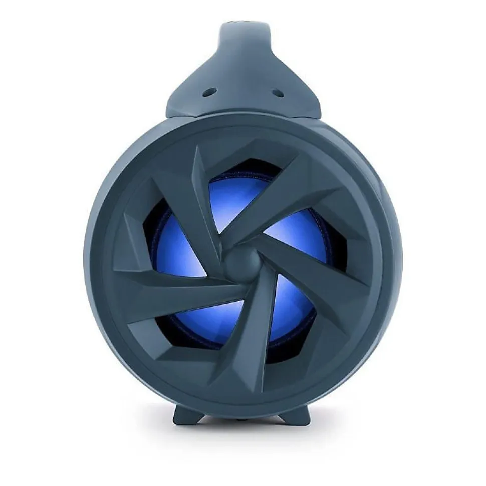 Enceinte lumineuse Bluetooth 50W avec effets lumineux dynamiques synchronisés, micro intégré, batterie rechargeable 1200 mAh, résistante aux éclaboussures (IP54), design compact dark blue, connectivité Bluetooth 5.0 avec portée jusqu’à 10 mètres, compatible smartphone, idéal pour soirées festives et utilisation intérieure/extérieur.