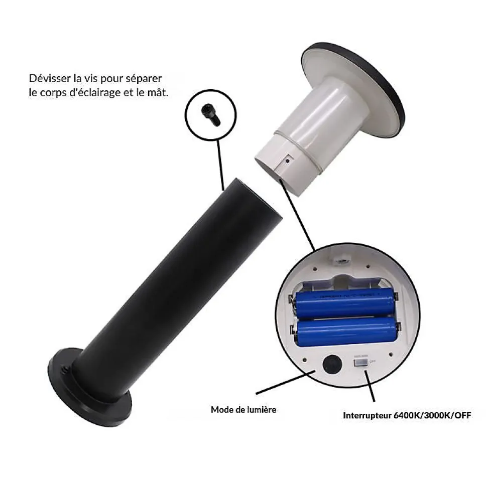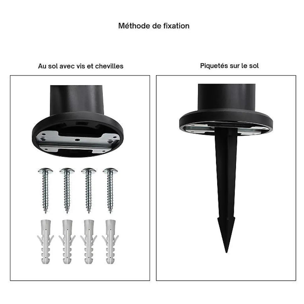 [Borne de Jardin Solaire 60cm Noire] Éclairage extérieur autonome et décoratif, idéal pour allées, terrasses et jardins.[Température CCT double 3000K & 6400K] Ambiance chaleureuse ou lumière froide selon vos besoins et préférences.[Haute autonomie grâce à batterie 1800 mAh] Fonctionne sans électricité, se recharge au soleil pour un éclairage nocturne fiable.[Indice de protection IP65] Résiste parfaitement à la pluie et à la poussière pour un usage extérieur longue durée.[Certification CE & RoHs – Garantie 2 ans] Produit sécurisé, fiable et conforme aux standards européens.- [Borne de Jardin Solaire 60cm Noire] Éclairage extérieur autonome et décoratif, idéal pour allées, terrasses et jardins.