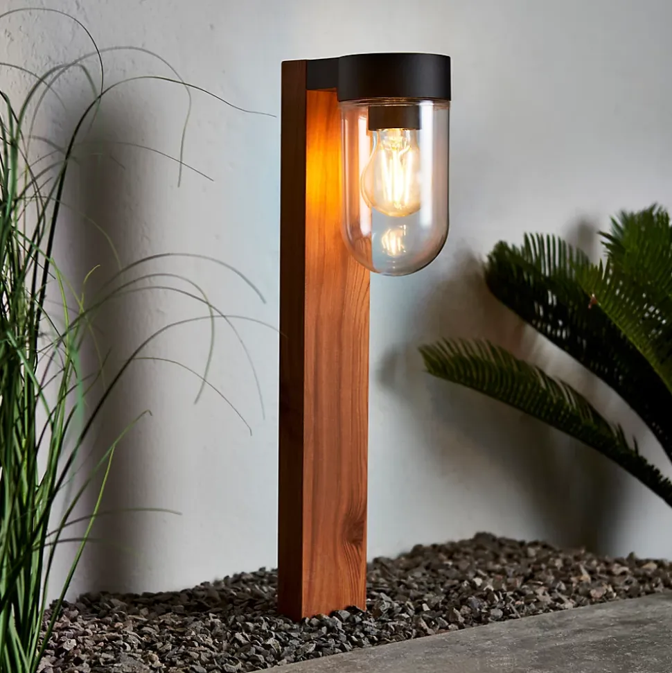 Borne d’extérieur Lovage effet bois marron et noir E27 IP44 10W GoodHome