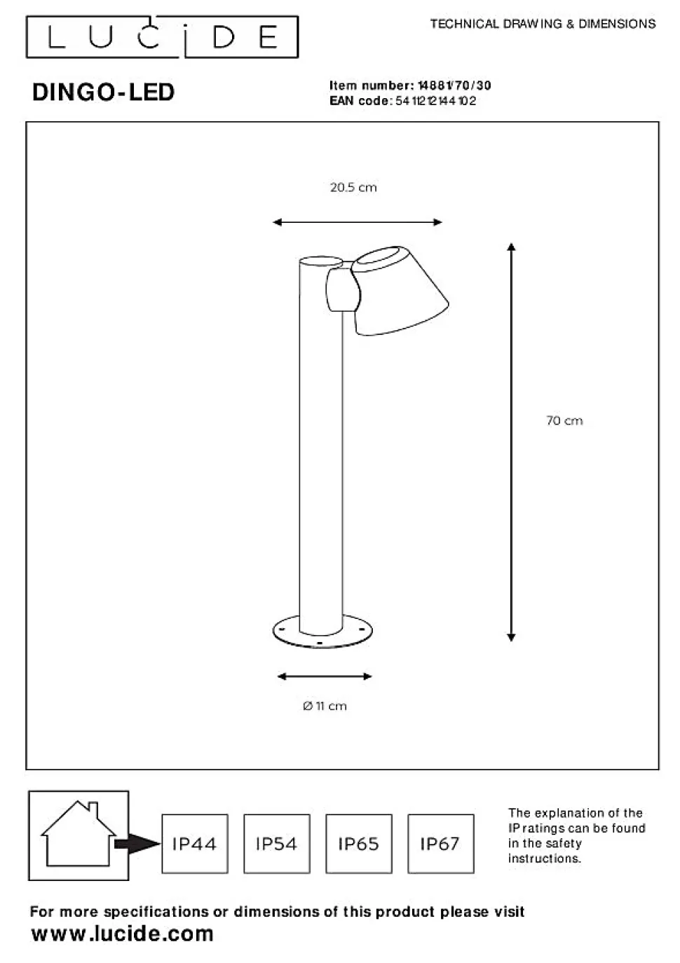 Un luminaire élégant avec une qualité de lumière exceptionnelle. Voici Dingo LED. Ce luminaire d’extérieur est idéal pour éclairer votre porte d’entrée ou la cour avant de manière agréable. Avec sa forme élégante, cet éclairage extérieur est un vrai régal pour les yeux. Vous aviez déjà probablement compris que ce luminaire extérieur est compatible avec les ampoules LED à économie d’énergie. Grâce à sa petite taille, il saura parfaitement s’adapter à son environnement. Si vous cherchez un éclairage d’ambiance efficace, Dingo LED est ce qu’il vous faut.Caractéristiques uniques:• Fourni avec une source lumineuse à intensité variable• Dispose d’une lumière blanche chaude (3000K)• Facile à connecter à un variateur (non fourni)• Fabriqué en métalPrincipales caractéristiques du produit:• Dessiné spécialement pour une utilisation fiable et de longue durée à l’extérieur (IP44)• Consommation énergétique: 1x5W / 230V / A intensité variable (Ampoule incluse)• Dimensions: Lon.11 x Larg.20,5 x Haut.70 cm• 2 Ans garantie sur le luminairePourquoi choisir l’éclairage Lucide?Lucide incarne un design innovant, un savoir-faire artisanal et une fiabilité exemplaire. En tant qu’entreprise familiale belge avec plus de trois décennies d’expertise, nous concevons des éclairages de haute qualité qui enrichissent et transforment chaque espace, tant intérieur qu’extérieur. Notre collection polyvalente comprend des luminaires durables et des sources lumineuses économes en énergie, soigneusement conçus par nos propres experts et fabriqués selon les normes CE les plus strictes. Grâce à notre large gamme, nous vous proposons toujours une solution d’éclairage adaptée, quel que soit le style ou l’espace. Ainsi, nous illuminons non seulement votre espace de vie mais aussi votre processus de choix dans la recherche d’un éclairage de qualité et abordable. Chez Lucide, nous combinons innovation et savoir-faire pour un…