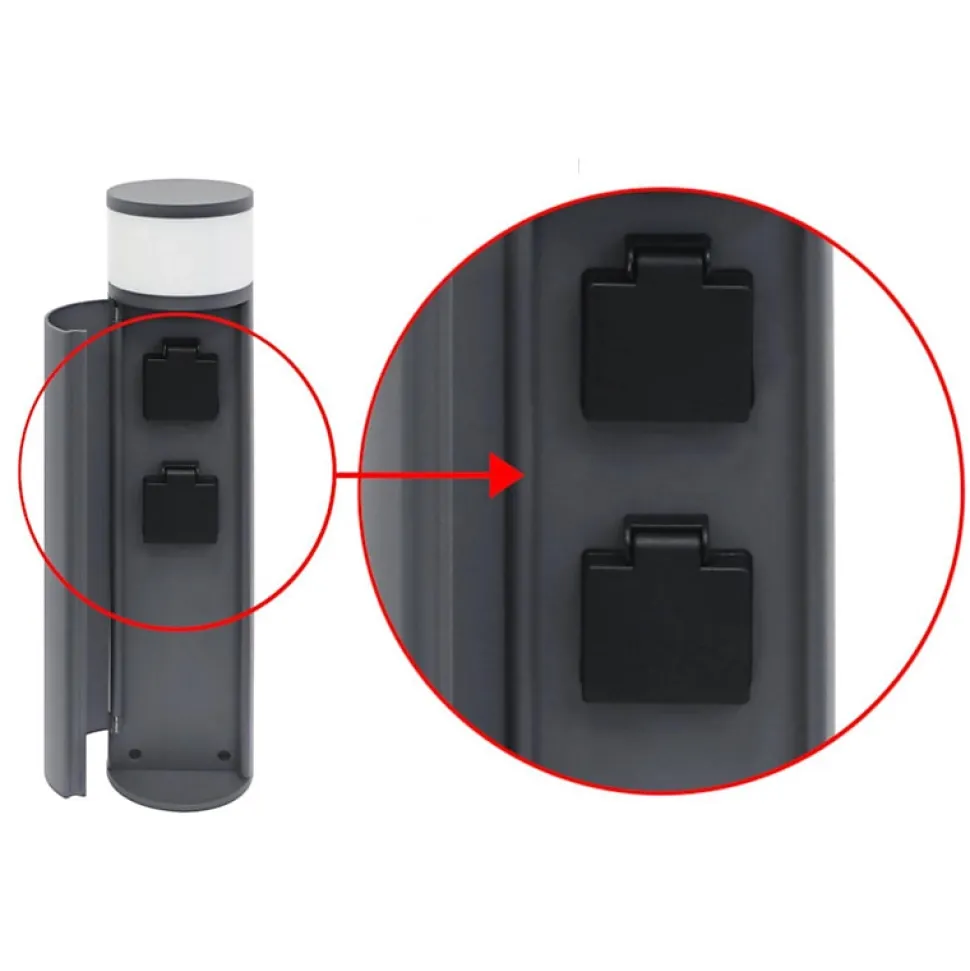 Indigo propose cette borne ronde anthracite pour éclairage extérieur avec 2 prises de courant intégrées. L’ensemble est étanche – norme IP44 – et embarque un convertisseur non dimmable dans l’appareil. Ce luminaire est idéal dans un jardin ou sur une terrasse.Borne lumineuse2 prises 2P+T 16A intégréesÉtanche (IP44)Anthracite