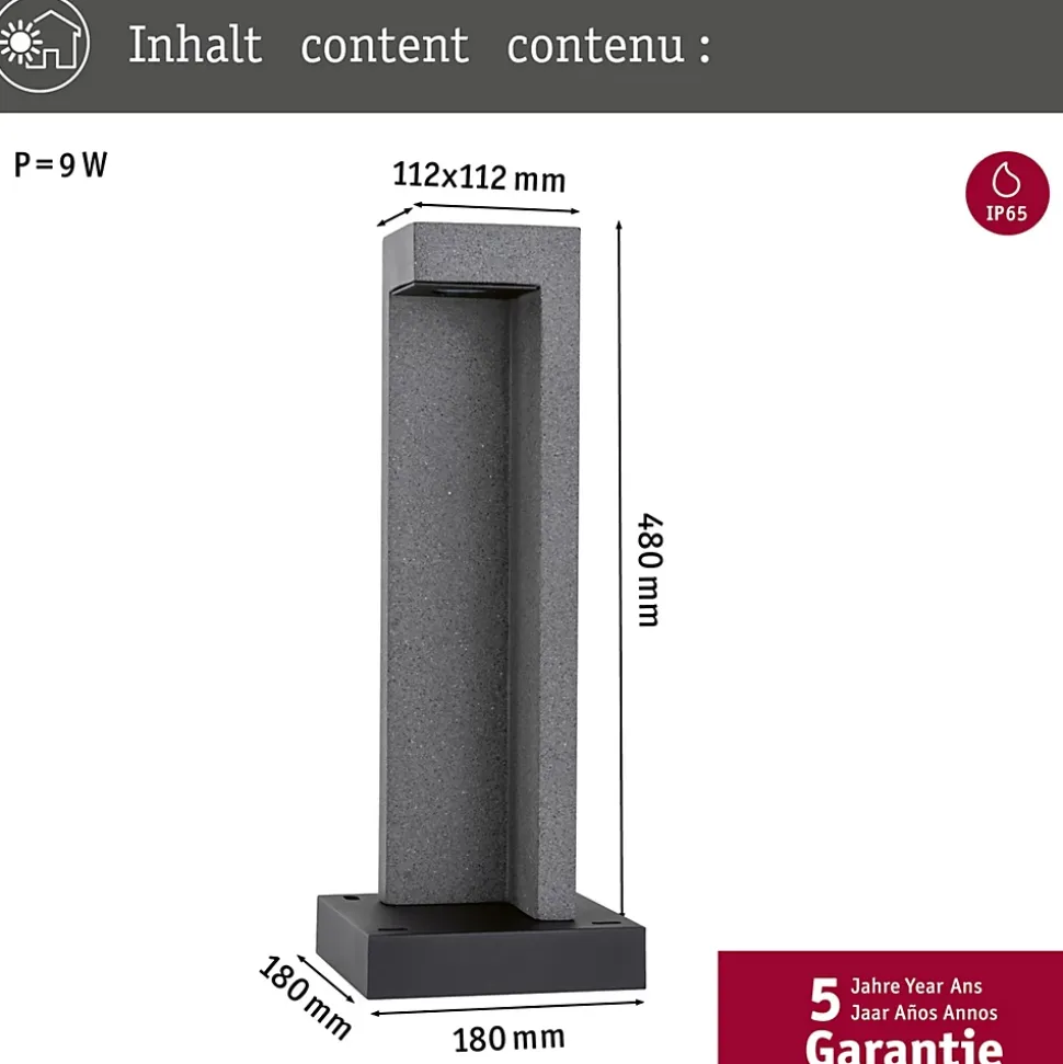 Crée des effets de lumière indirects dans les zones en plein air|Borne lumineuse pour l’éclairage optimal des allées|Protection IP : IP65 – Protection contre les jets d’eau|Pour raccordement direct au secteur 230V