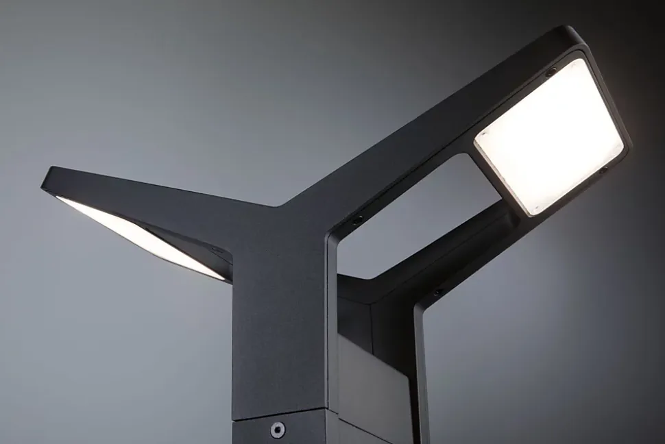 La borne lumineuse à LED Juntea de 2x800lm a une double émission lumineuse et trouve son application surtout sur les chemins des habitations proches de la côte. Le module LED peut être remplacé. La surface du luminaire est particulièrement résistante à la corrosion. C’est pourquoi les luminaires sont moins attaqués par l’air salin. La borne lumineuse crée un éclairage blanc chaud uniforme et éclaire l’entrée en toute sécurité. Avec sa couleur anthracite, il s’intègre parfaitement dans tous les environnements.