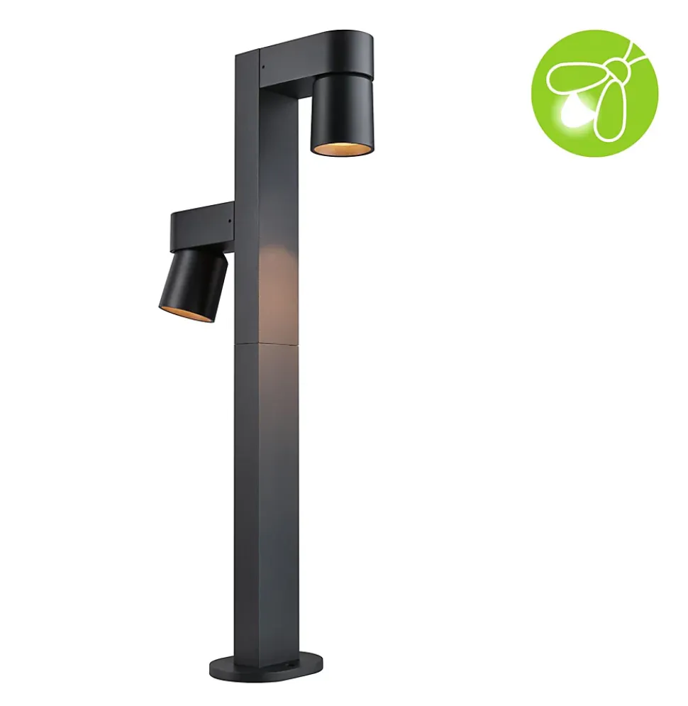 La borne lumineuse LED Kimu avec 2x500lm crée un éclairage uniforme et éclaire les entrées et les voies d’accès pour plus de sécurité. Les 2 têtes de luminaire peuvent être orientées de manière flexible afin que la lumière brille exactement là où elle est nécessaire. Avec sa couleur anthracite, elle s’intègre parfaitement dans n’importe quel environnement. Un boîtier robuste en aluminium le rend également résistant à l’eau de mer tandis que la protection IP44 le protège des éclaboussures. Avec une température de couleur de 2200 kelvin, cette borne est particulièrement adaptée aux insectes, car cette valeur se situe en effet en dehors de la plage visible de la plupart des insectes, ils ne sont donc pas attirés par cette source lumineuse supplémentaire. Le luminaire protège activement les insectes sans que son efficacité pour les humains ne soit entravée. La lumière dorée chaude crée une atmosphère agréable autour de la maison