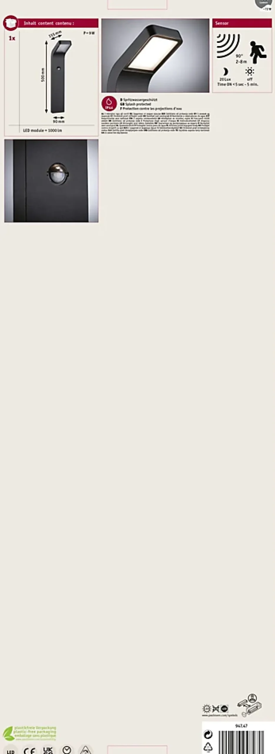 Luminaire résistants à l’eau de mer pour une utilisation près du littoral|Commutation automatique par détecteur de mouvement intégré|Borne lumineuse pour l’éclairage optimal des allées|Température de couleur: 3000K – Blanc chaud|Pour raccordement direct au secteur 230V|Protection IP : IP44 – Protection contre les projections d’eau