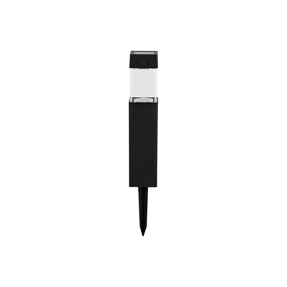 8 lumens, bouton marche arrêt, mise en route automatique grâce au détecteur de pénombre, 1 batterie (intégrée) 300mAh 1.2V NiMH AAA par borne, autonomie jusqu’à 8 heures, finition plastique, IP44. Dim.hauteur 27.5 x 5.7cm.