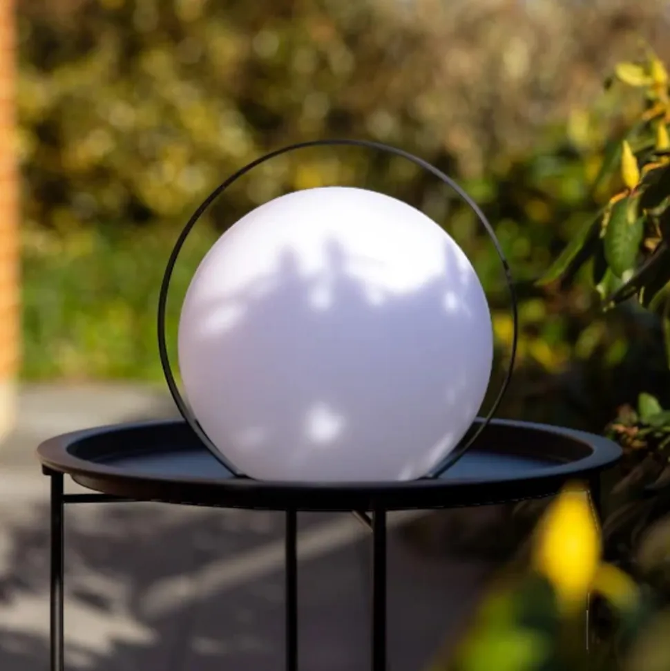 Nos boules LED Asta peuvent être rechargées par USB ou par cellules solaires.Bon à savoir :-Se rechargent par USB ou par cellules solaires en plein soleil pendant 6 à 8 heures.-Émettent une lumière blanche chaude. S’allume automatiquement à la tombée de la nuit pendant 6 à 8 heures après une charge complète.-Résiste à des températures comprises entre -14 et 35 degrés.-Télécommande disponible en option.-En cas de faible ensoleillement, par exemple en automne, vous pouvez recharger vos boules LED via le câble USB fourni.Les boules Asta créent une ambiance lumineuse chaleureuse dans votre jardin, sur votre balcon, votre terrasse ou partout où vous le souhaitez.Spécifications :-Réf. : 22025-Indice de protection : IP44-Température de couleur : 2800-3200 Kelvin-Diamètre : 25 cm-Autonomie : 4 à 8 heures-Puissance : 1 W / 5 V-Télécommande : oui-Temps de charge : 4 à 8 heures-Alimentation : Secteur/Cellule solaire