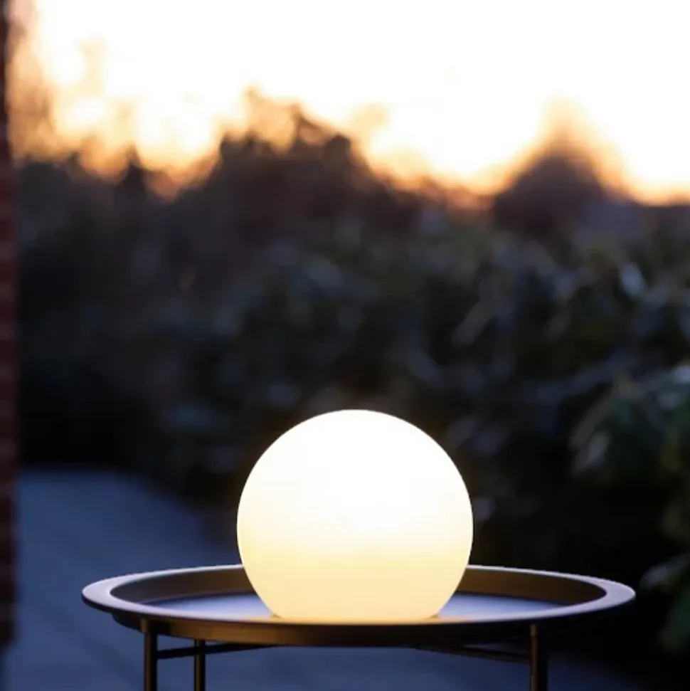 Ces élégantes boules lumineuses LED Mia s’intégreront parfaitement dans n’importe quel jardin ou sur n’importe quel balcon.Bon à savoir-Les boules lumineuses diffusent une lumière blanc chaud.-Elles se rechargent sur secteur en 4 à 8 heures ou au soleil en 8 heures.-Elles restent allumées de 4 à 8 heures après une charge complète.-Elles peuvent également être utilisées à l’intérieur, au sol ou dans n’importe quelle autre pièce.-Vous pouvez contrôler la luminosité à l’aide d’une télécommande (vendue séparément).-Les boules Mia sont donc parfaites pour vos garden-parties et vos réunions entre amis ou en famille, où elles créeront une ambiance magique. Spécifications :-Réf. : 22010-Indice de protection : IP44 (résistant à la pluie fine)-Température de couleur : 2800-3200 Kelvin-Diamètre : 20 cm-Source lumineuse : LED-Autonomie de la batterie : 4-8 h-Puissance : 1 W / 5 V-Télécommande : Oui (à commander séparément)-Temps de charge : 4-8 h