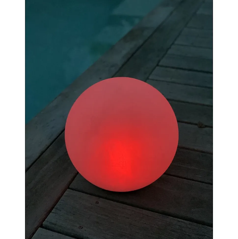 Boule solaire étanche multicolore de 30 cm de diamètre avec 3 modes d’utilisation (flottante, posée, plantée). Télécommande incluse. Jusqu’à 8h d’éclairage continu avec LED multicolore 1W et LED blanche 1W. Batterie rechargeable Ni-Mh AA 1300mAh fournissant une puissance totale de 2W. Étanche et résistante aux intempéries, idéale pour l’éclairage extérieur et les ambiances festives.