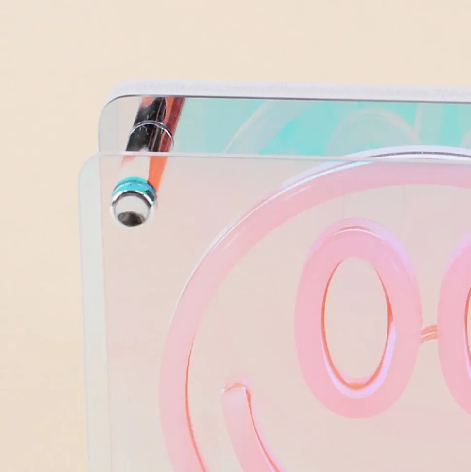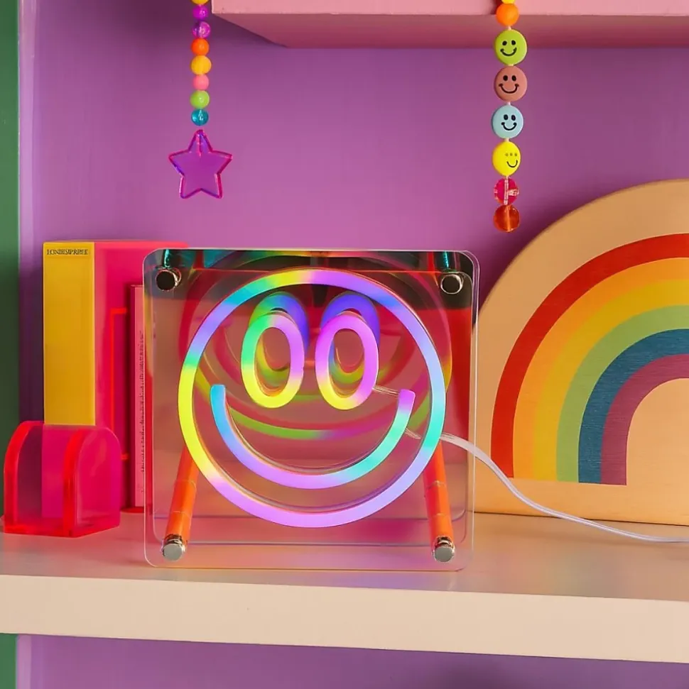 Ajoutez une dose de bonheur à votre décoration !Le Cadre néon smile 15×15 cm de la série Smiley est parfait pour insuffler une ambiance dynamique à votre intérieur.- Design carré aux couleurs vives : gris, violet, orange et jaune. – Fabriqué en acrylique et PVC, il garantit robustesse et simplicité d’entretien. – Idéal en bureau, chambre ou salon ; combinez-le avec des éléments en métal ou bois pour un effet stylé. Référence : 15545