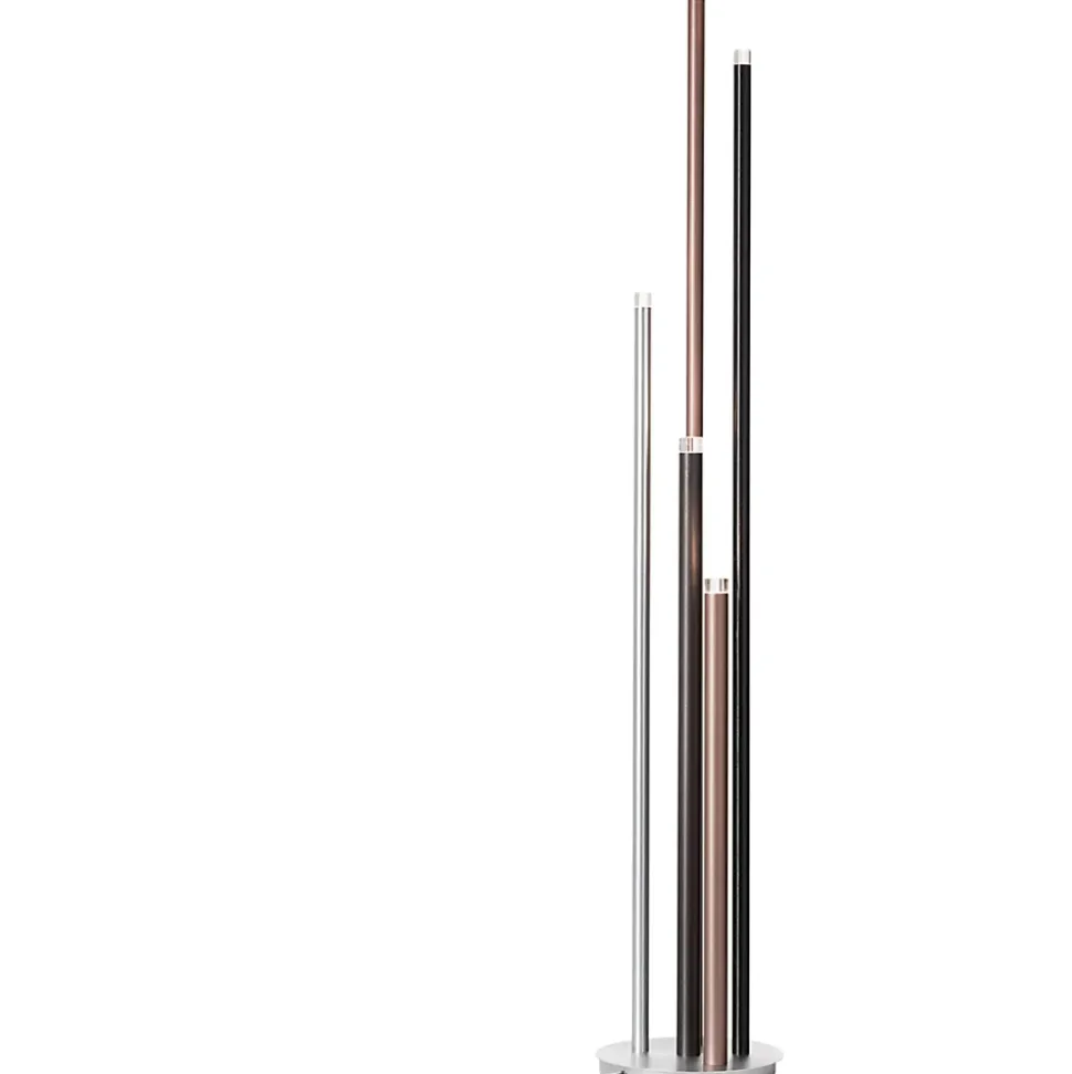Le lampadaire Cembalo est une véritable œuvre lumineuse qui allie design contemporain et technologie LED de pointe. Avec ses cinq bras lumineux en aluminium, noir et brun foncé, il joue une partition lumineuse contemporaine, tout en créant une ambiance chaleureuse et raffinée. Cembalo s’intègre parfaitement dans un salon moderne, un bureau élégant ou une salle à manger contemporaine. Sa technologie LED écoénergétique garantit une longue durée de vie et une faible consommation.