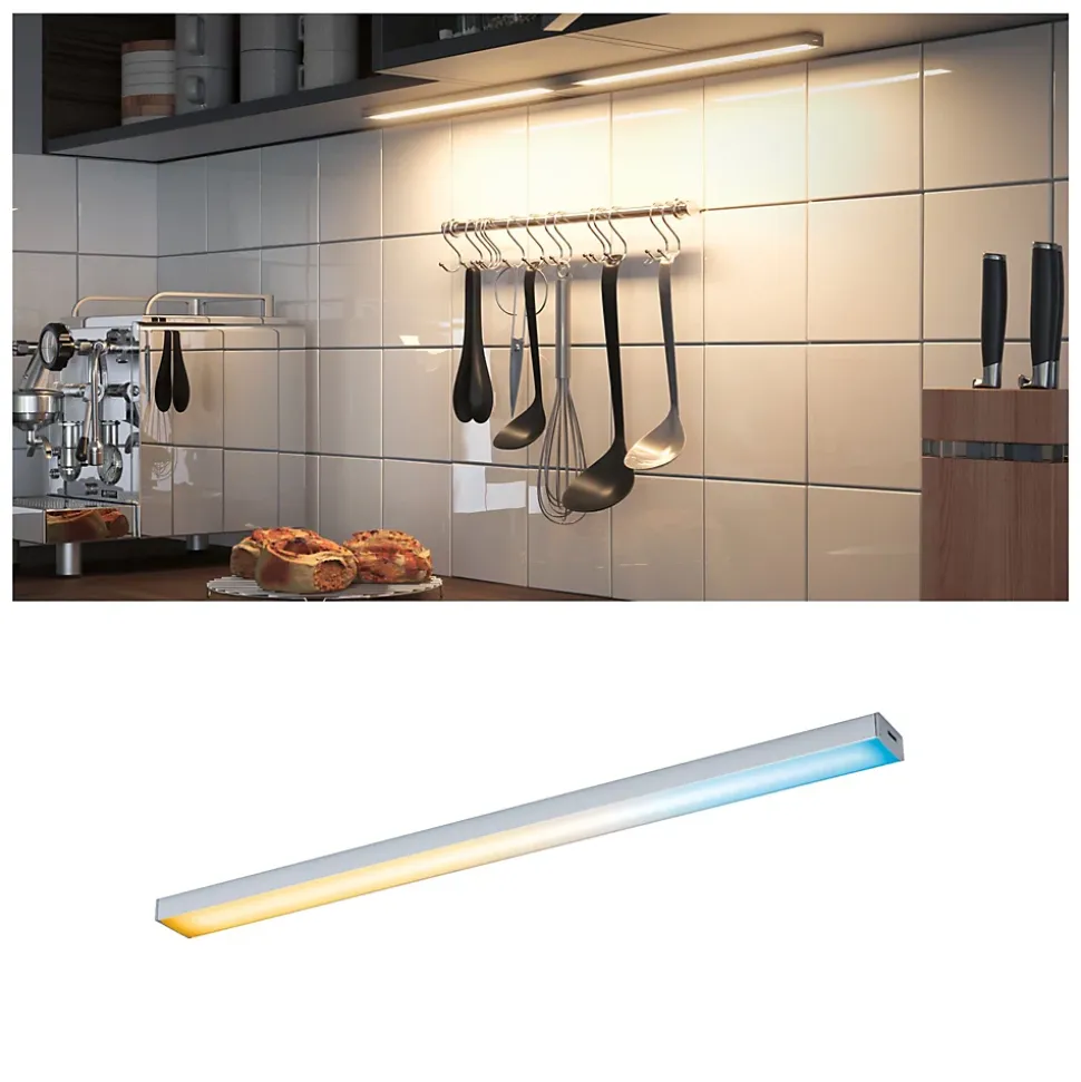 Installez le spot Barre de 35 cm sous un élément suspendu afin qu’il éclaire le plan de travail. Clever Connect est un système d’éclairage personnalisé de meubles. Installez les luminaires, le driver et les accessoires en toute simplicité et selon vos préférences. La fonction Tunable White allie « travail » et « bien-être » sous la forme d’ambiance lumineuse. Longueur illimitée de câble pour étendre le système en toute liberté.