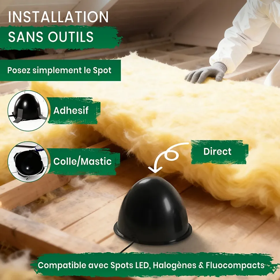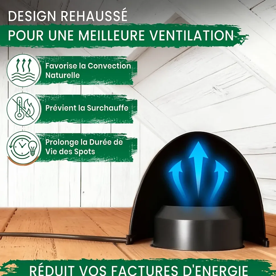 - CONFORT ET LONGÉVITÉ ACCRUES DES SPOTS : La cloche spot encastrable led CX5 limite l’entrée de poussières et d’insectes, garantissant un air plus sain. La combinaison avec l’isolant favorise une réduction du bruit environnant pour une ambiance plus calme. Egalement, Il préserve également vos spots de la surchauffe, prolongeant ainsi leur durée de vie. Profitez d’un environnement plus tranquille d’une qualité d’air améliorée avec une solution qui allie confort et économie d’énergie.