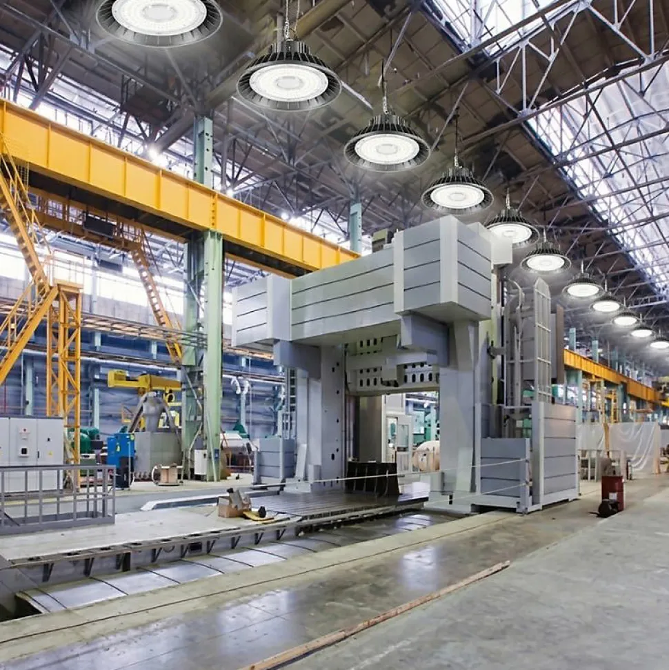 - Cloche industrielle LED dont les dimensions sont idéales pour éclairer de grandes surfaces industrielles, des usines, des entrepôts et autres espaces de stockage de grand volume avec une hauteur sous plafond de 4 à 7 mètres