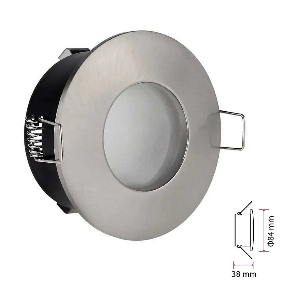 Diamètre extérieur: 83 mm, diamètre du trou: environ 68 à 75 mm Profondeur d’installation: environ 60 mmIP65 de qualité imperméable à l’eau plus un tampon imperméable supplémentaire pour empêcher l’eau et l’humidité, l’acier inoxydable rond a un aspect solide et un verre dépoli qui n’éblouit pas. La vapeur d’eau est bloquée tout en assurant l’effet d’éclairage, particulièrement adapté aux pièces humides comme la salle de bain ou la cuisine, ou à l’extérieur de la porte d’entrée ou de la terrasse.Avantages des cadres pour spots à encastrer: Convient pour les lampes halogènes ou autres ampoules GU10 et modules LED, Si l’ampoule est cassée, enlever directement l’ancienne ampoule et la remplacer par une nouvelle sans démonter toute la lampe,l’ampoule est détachable du support, c’est plus pratique pendant l’installation et le remplacement .