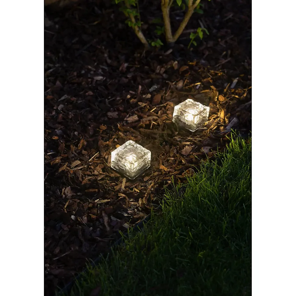 Cube de glace solaire GALIX G4470 avec LED blanche en verre élégant. Fonctionne à l’énergie solaire avec fonctionnement jusqu’à 6h. Interrupteur on/off inclus pour un usage facile. Design moderne pour décorer jardins et terrasses.