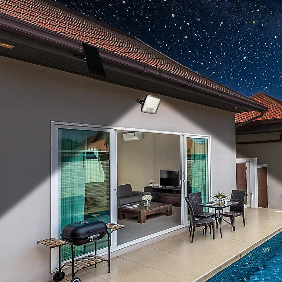 Extrêmement lumineuse : grâce à l’utilisation de LED SMD de dernière génération, la lampe solaire CUBE atteint 9600 lumens. C’est un éclairage de sécurité parfait pour éclairer un passage, une entrée… 2 modes de fonctionnement : 1) Mode lumière constante : la lampe s’allume automatiquement la nuit (vous pouvez régler l’heure et la puissance d’éclairage) 2) Mode détecteur de mouvement : la lampe s’allume automatiquement la nuit. Elle s’allume à la luminosité maximale lorsqu’un mouvement est détecté, puis passe à une luminosité plus faible après 60 secondes sans mouvement. Economie d’énergie : la lampe solaire avec détecteur de mouvement se recharge grâce à un panneau solaire qui reçoit la lumière du soleil… Le tout sans facture d’électricité. Le panneau solaire et le projecteur sont séparés et reliés par un câble de 5 mètres de long : cela permet de placer le panneau là où il recevra le plus de soleil possible, et le spot sous le toit, sur le mur, à l’intérieur… où vous le souhaitez. Installation facile : il suffit de fixer le spot au mur (support réglable) et de le connecter au panneau solaire grâce au connecteur étanche. L’installation est terminée ! Étanche et durable : avec la certification IP65 (résistant à l’eau), cette lampe solaire est adaptée à tous les environnements météorologiques. Corps en polycarbonate extrêmement robuste. Le panneau solaire de 2 W est fabriqué en plastique hyper résistant. La batterie incluse est également remplaçable (Li-Ion 12,8 V 6 Ah) : elle offre jusqu’à 60 heures d’éclairage… Technologie CCT : avec cette technologie vous pouvez choisir entre une lumière chaude 3000K et une lumière naturelle 4000K. Diffuseur opale antireflet. Equipé d’une télécommande pour programmer la lampe.
