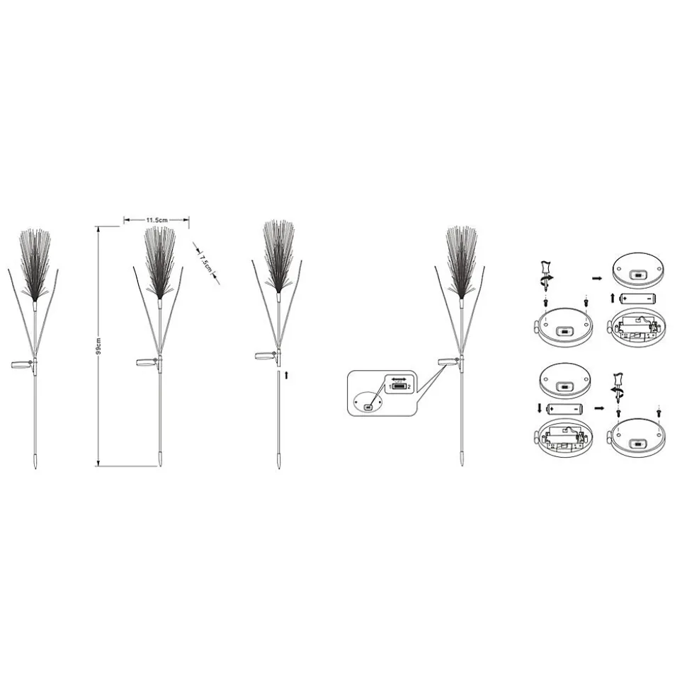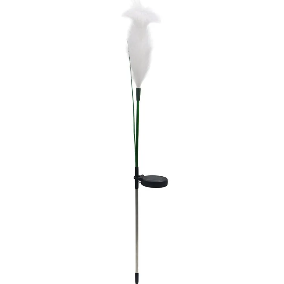 Décoration solaire Plumeau GALIX 99 cm à planter, 10 LED blanc chaud, batterie AA 300mAh remplaçable, 3 modes (fixe/off/clignotant), autonomie jusqu’à 8 h.