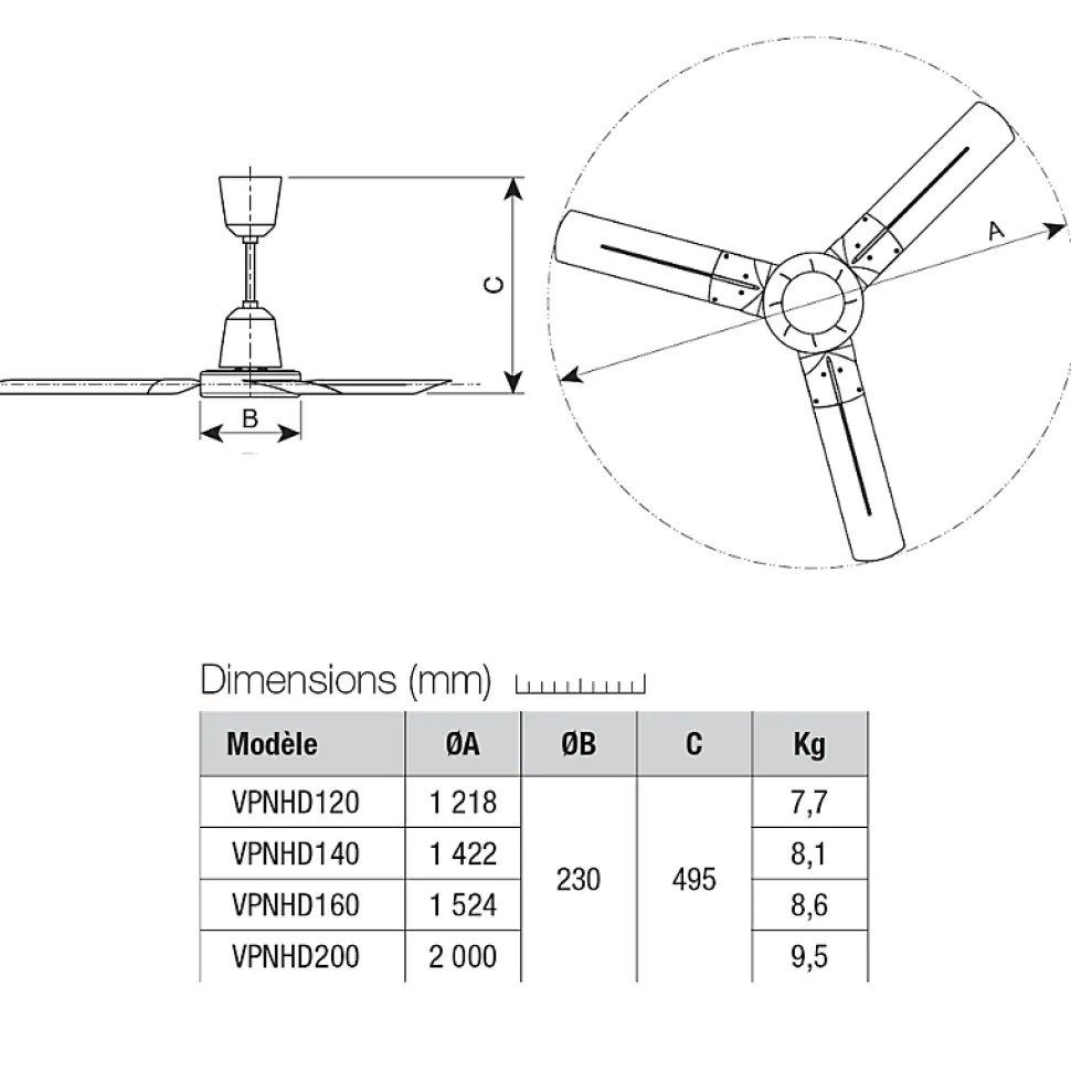 Le VPNHDI200 Nordik Heavy Duty est un déstratificateur à pales robuste conçu pour assurer une circulation d’air continue et durable dans les environnements industriels. Les avantages clés :Optimisation de la température en limitant la stratification de l’air chaud.Fonction réversible : adapté au brassage d’air été/hiver.Protection renforcée : IP55, conforme aux environnements agressifs.Moteur AC à faible consommation, conçu pour un fonctionnement permanent.éligible aux Certificats d’économie d’énergie (CEE – fiche BAT-TH 142). Caractéristiques techniques :Diamètre des pales : 200 cm (3 pales)Débit d’air maximum : 22 050 m³/hPuissance absorbée : 85 WVitesse de rotation : 210 tr/minNiveau sonore : 56,4 dB(A)Alimentation : 230 V AC monophaséFonction réversible été/hiverCarrosserie : inox, finition gris RAL 9016Ailettes en ABS anti-UVIndice de protection : IP55Fixation : plafonnière (plaque et vis fournies)Tige fournie : longueur 290 mmDimensions : Ø 2 000 mm – Hauteur : 495 mmPoids : 9,5 kg Le Nordik Heavy Duty est un déstratificateur robuste, performant et durable, conçu pour améliorer l’efficacité thermique dans les grands volumes industriels.Pour garantir le bon fonctionnement de votre équipement, ce produit doit être installé par un professionnel qualifié afin de respecter les normes en vigueur et garantir une mise en service en toute sécurité.Il est impératif de vérifier le bon état du colis au moment de la livraison, à la fois à l’extérieur et à l’intérieur. En cas d’avarie ou de dommage constaté, le client doit impérativement émettre des réserves précises et caractérisées sur le bon de livraison, détaillant la nature exacte des dommages.Sans ces réserves formulées au moment de la livraison, aucun échange ni remboursement ne pourra être envisagé.Nous rappelons qu’une simple mention « sous réserve de déballage » n’a aucune valeur juridique. Toute réclamation formulée après la livraison sans réserves ne sera pas prise en compte.