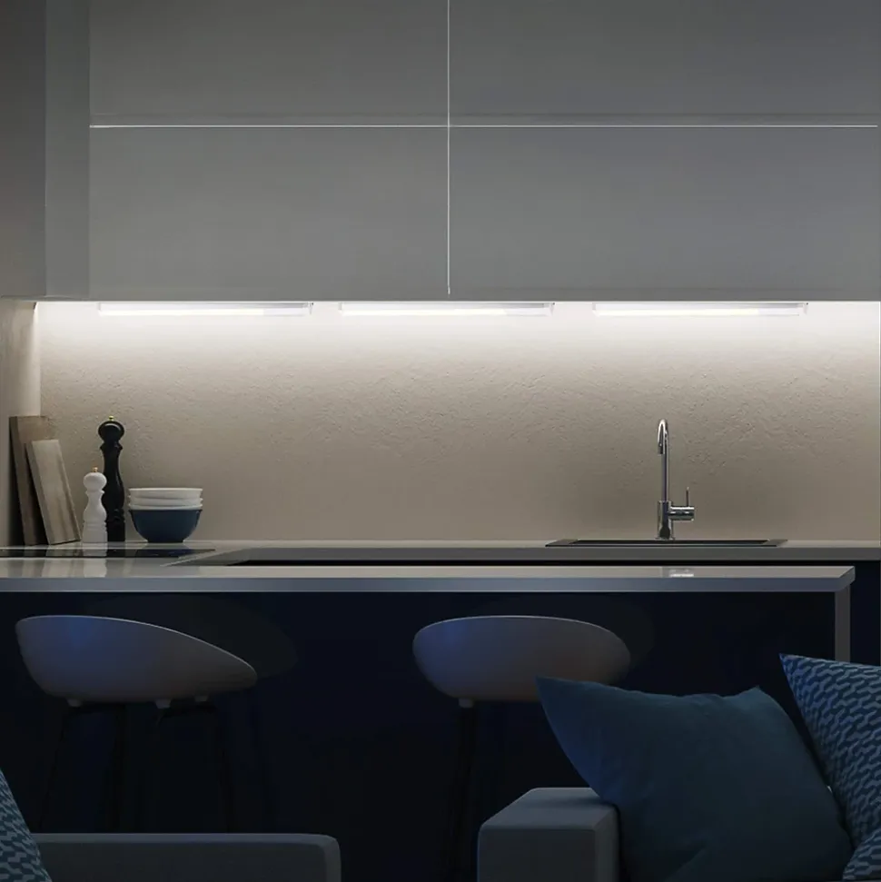 LED SMD: performances et économie d’énergie. 800 lumens pour seulement 10w de consommation! Lumière blanche naturelle 4000K: ni chaude ni froide; diffuseur anti-éblouissant: lumière diffuse et homogène sans ombres. Accessoires inclus (câble d’alimentation 150cm, connecteur 15cm, kit d’installation); avec interrupteur marche / arrêt. Longueur: 87,3 cm – Prolongeable en série jusqu’à 100w max; IP20: usage interne uniquement; excellent remplacement pour l’ancienne réglette néon T5. Structure en polycarbonate: sûre et robuste; produit certifié.