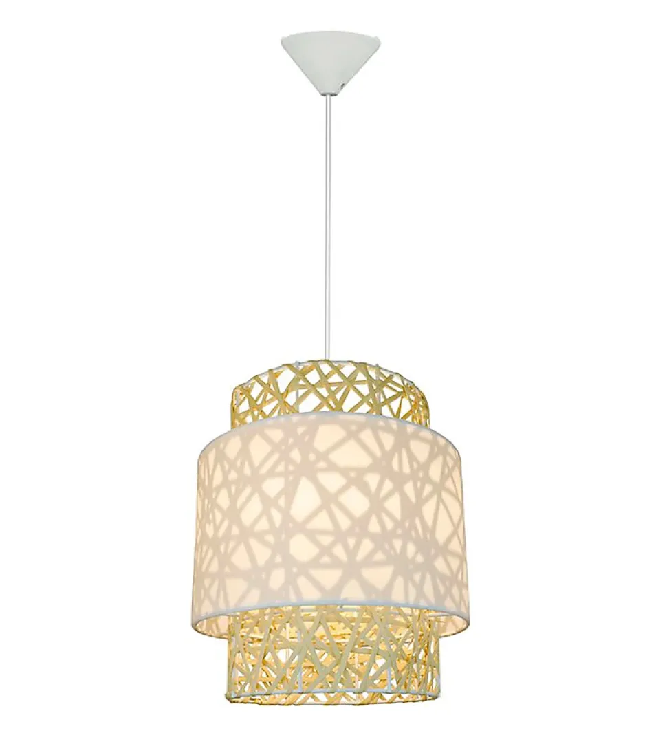 Caractéristique :- Puissance max : 60. W- Culot d?ampoule : E27- Matériaux : Rotin et tissu- Couleur : Blanc- Hauteur : 160cm- Largeur : 30cmDescription :La suspension (ou plafonnier) Quito en rotin et tissu blanc a une puissance maximale de 60. W et elle est compatible avec les ampoules E27 (ampoule non fournie). La suspension fait 160cm de hauteur maximale (réglable) et 30cm de large.La suspension Quito 553074 offre une combinaison parfaite entre fonctionnalité et esthétisme, pour une expérience d’éclairage optimale.
