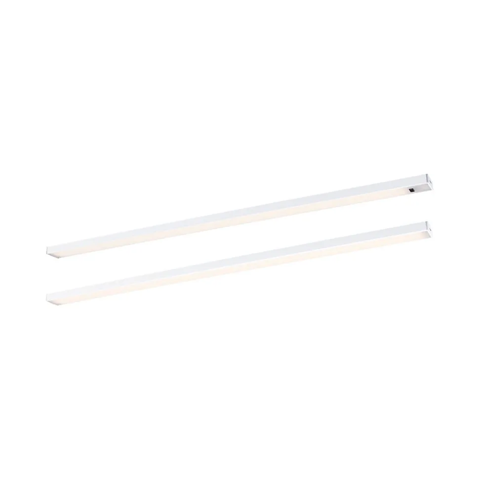 Le lot de deux éclairages sous-meubles Inline extensible en Blanc dépoli discret et de longueur 550x26mm offre une solution élégante pour l’éclairage des plans de travail. Ces luminaires pour meubles garantissent un éclairage optimal et créent une atmosphère agréable. Grâce à leur commande sans contact, ils permettent une manipulation hygiénique. Le kit de démarrage est extensible et peut être prolongé par un kit d’extension au maximum. Plusieurs longueurs peuvent être combinées entre elles pour obtenir la solution d’éclairage recherchée. De plus, la fonction de variation d’intensité permet d’adapter la température de couleur blanc chaud en fonction des besoins individuels. Le raccordement se fait directement au réseau 230 V avec un transfo-prise.