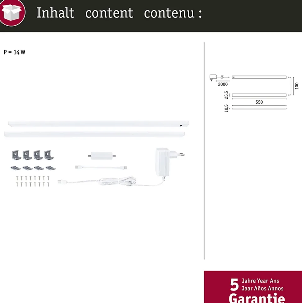 Le kit de démarrage peut être combiné avec un kit d’extension au maximum.|Température de couleur: 2700K Blanc chaud – 6500K – Lumière du jour|Éclairage uniforme des plans de travail|Les matériaux des luminaires sont nettoyables|La fonction mémoire enregistre la température de couleur réglée|Le détecteur de proximité permet d’allumer et éteindre le luminaire sans contact