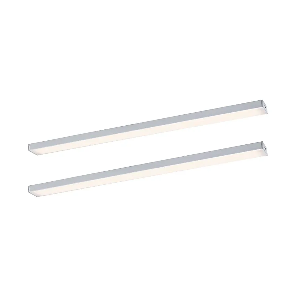 Le kit d’extension comprenant deux éclairages de meubles Inline en Chrome mat discret et de longueur 350x26mm est le complément parfait du kit de démarrage Inline. Ces luminaires sont une solution élégante pour illuminer les plans de travail de manière optimale. La fonction de variation d’intensité permet de régler la température de couleur blanc chaud selon les besoins. De plus, l’entretien des luminaires est un jeu d’enfants, car les matériaux de haute qualité sont faciles à nettoyer. Le détecteur de proximité permet une mise en marche et un arrêt sans contact, ce qui contribue en outre à un mode de travail hygiénique. De plus, la fonction mémoire enregistre la température de couleur paramétrée, ce qui évite de devoir la régler à chaque fois. Avec une température de couleur de 3000K, les luminaires diffusent un agréable éclairage blanc chaud.