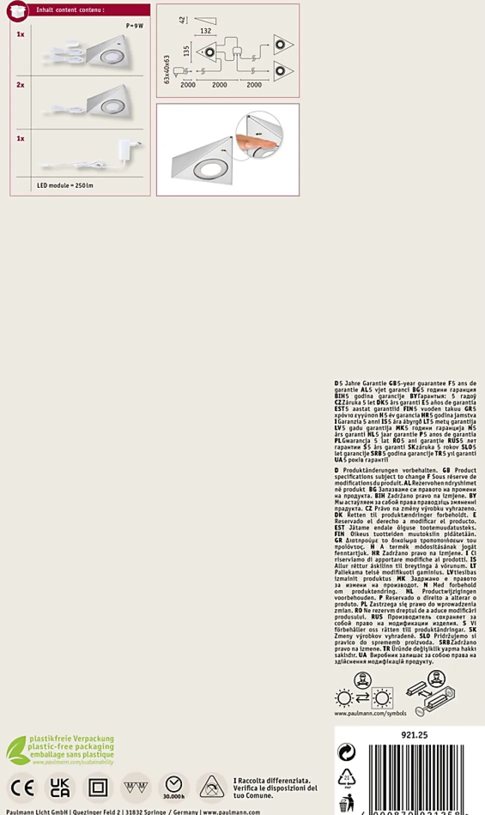Température de couleur: 3000K – Blanc chaud|Les éclairages de meubles puissants combinent éclairage parfait et design élégant|Les matériaux des luminaires sont nettoyables|Le raccordement est facile et rapide. Il se fait directement au réseau 230 V avec un transfo-prise.|Le détecteur de proximité permet d’allumer et éteindre le luminaire sans contact|Crée des touches lumineuses décoratives dans la pièce