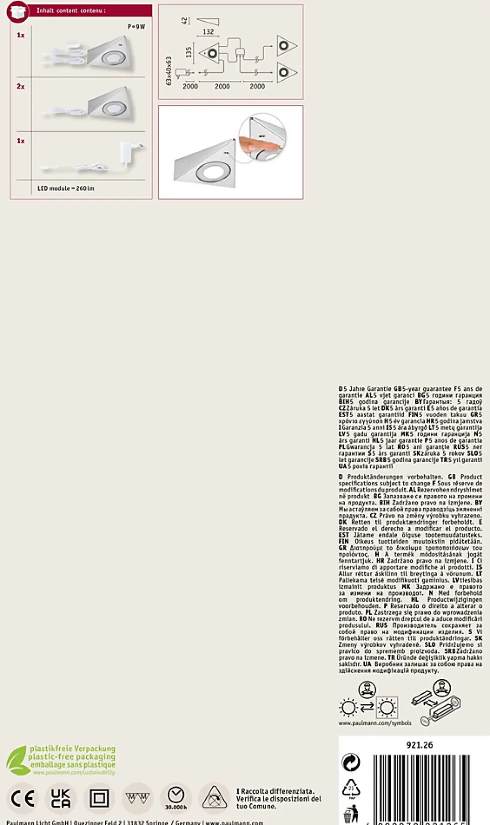 Température de couleur: 4000K – Blanc neutre|Les éclairages de meubles puissants combinent éclairage parfait et design élégant|Les matériaux des luminaires sont nettoyables|Le raccordement est facile et rapide. Il se fait directement au réseau 230 V avec un transfo-prise.|Le détecteur de proximité permet d’allumer et éteindre le luminaire sans contact|Crée des touches lumineuses décoratives dans la pièce