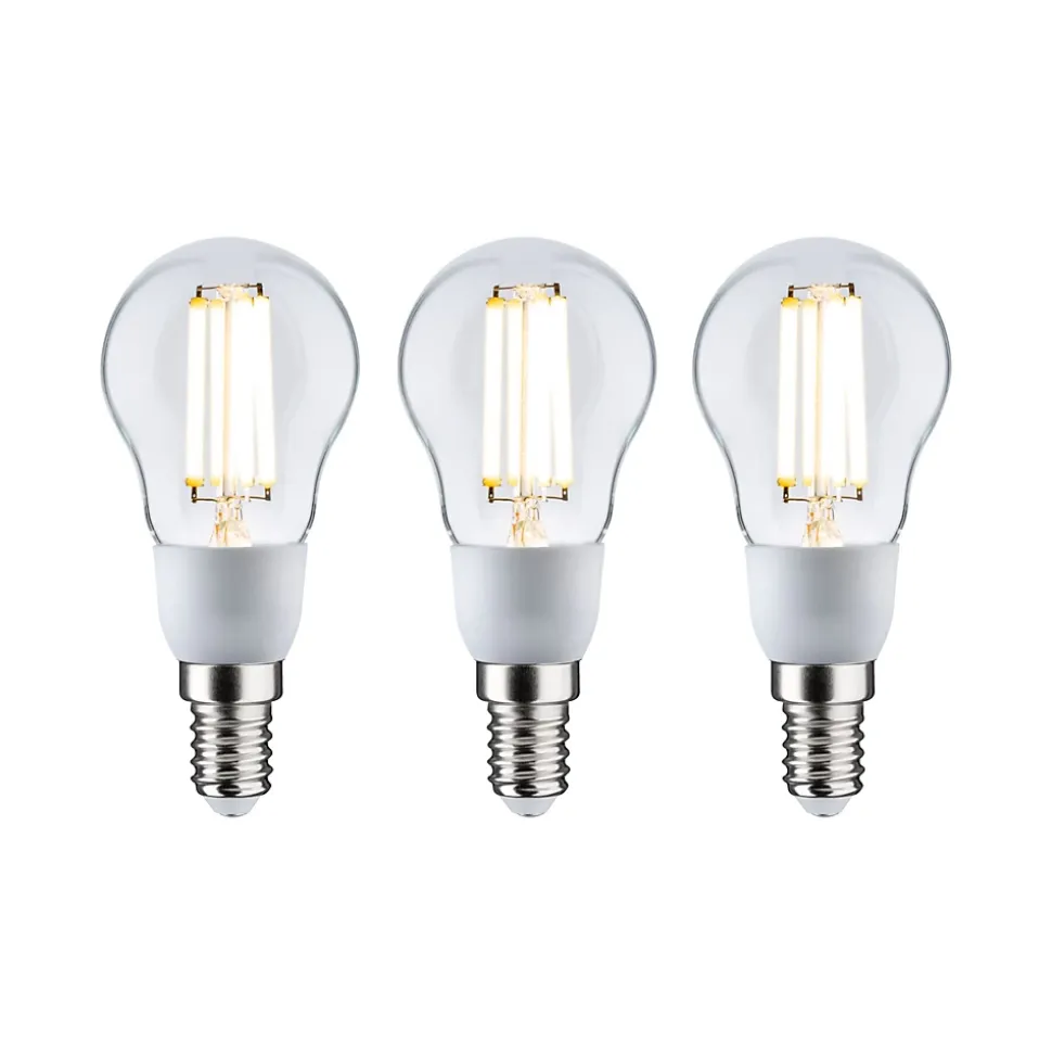 Les ampoules ultra efficaces de l’Eco-Line combinent innovation et durabilité. Grâce à une consommation d’énergie réduite de 60 % et à une durée de vie résolument plus longue que celle des ampoules LED standard, il est possible de réduire considérablement les coûts énergétiques tout en préservant l’environnement. Les sphériques à filament claires avec 3000K, une puissance de 3×2,5W et 3x525lm diffusent un éclairage uniforme agréable sans teinte verdâtre. Les ampoules sont compatibles avec les douilles E14 conventionnelles. Grâce à leur forme compacte, les ampoules sphériques sont idéales pour les petits luminaires. Le pack multiple a cela de pratique qu’il permet d’équiper directement plusieurs luminaires pour illuminer une pièce entière. Les lampes LED Paulmann portant le label Eye friendly produisent une lumière confortable qui préserve les yeux. Que ce soit pour travailler, lire ou se détendre, les lampes contribuent à un meilleur confort visuel.
