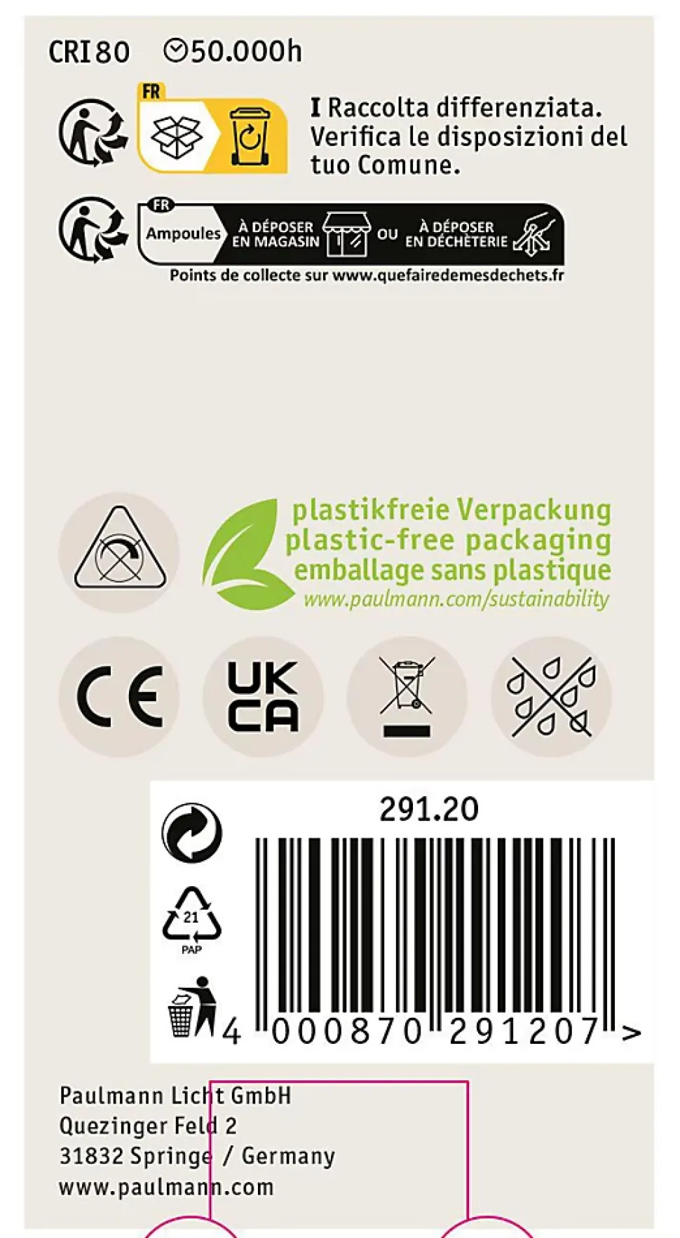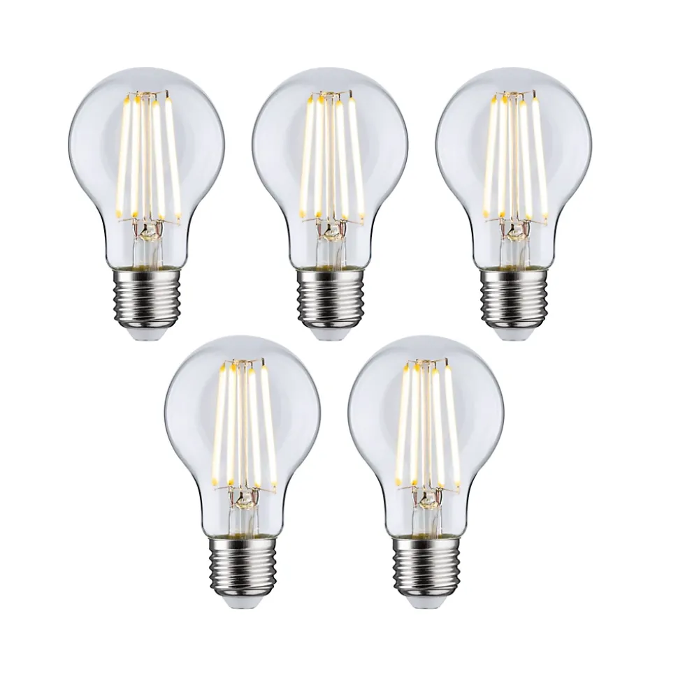 Alliant innovation et durabilité, les ampoules filament LED de la gamme Eco-Line sont des sources lumineuses ultra-efficaces. Elles sont proposées en lot de 5 unités à un prix avantageux. Grâce à une consommation d’énergie réduite de 60 % et une durée de vie nettement plus longue par rapport aux ampoules LED standard, elles permettent de réduire une partie des coûts énergétiques tout en contribuant à la préservation de l’environnement. Nos ampoules filament LED 2,5W, d’une température de couleur de 3000K et d’un flux lumineux de 525 lm, produisent une lumière agréable et homogène sans reflets vert. Elles sont compatibles avec toutes les douilles E27 du commerce et même les grands abat-jour seront éclairés de manière uniforme. Que ce soit pour travailler, lire ou se détendre, les ampoules LED Paulmann, certifiées Eye friendly », offrent une lumière respectueuse des yeux et assurent un véritable confort visuel. »