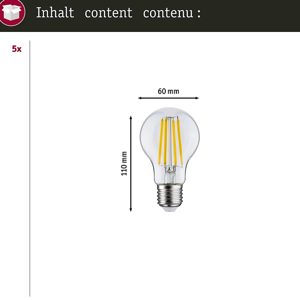 Offre kit avec avantage de prix attractif|Set composé de 5 luminaires ultra-efficaces|Température de couleur: 3000K – Blanc chaud|Lumière confortable et sans danger pour les yeux|Beauté classique|Pour tous les petits luminaires à culot E27|Possibilités d’utilisation multiples|Technique LED ultra-efficace