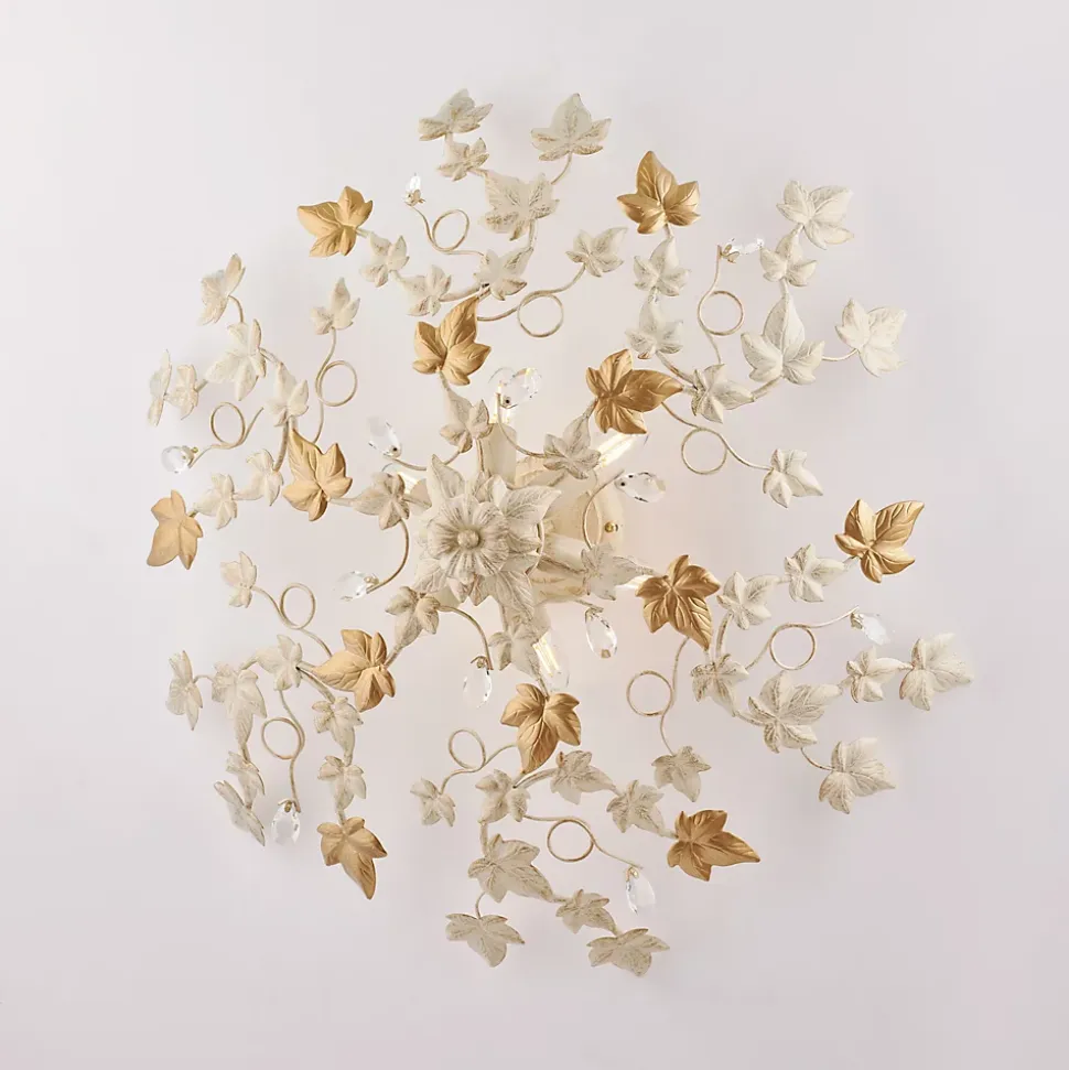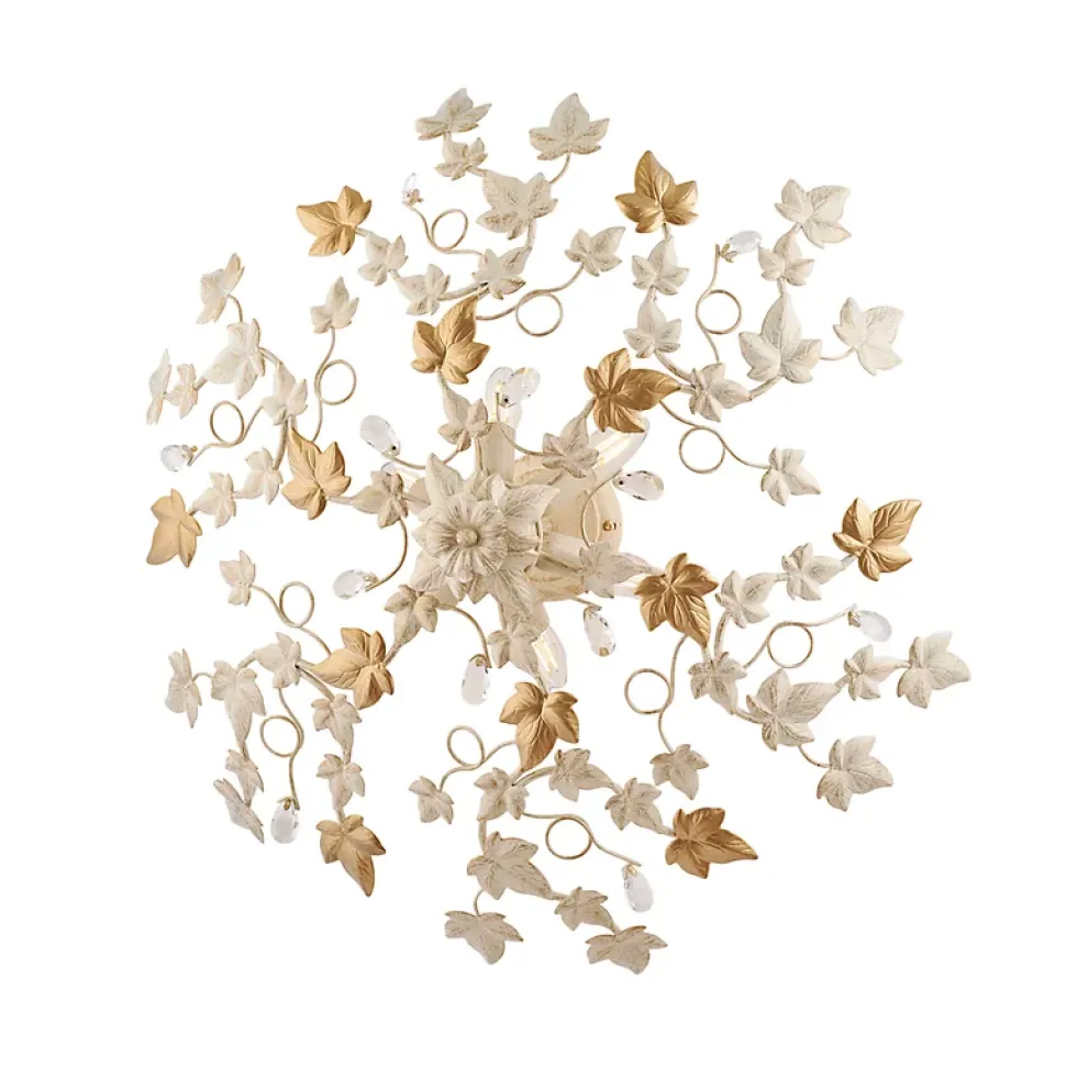 Plafonnier en fer laqué ivoire à décor or vieilli et strass cristal, 6 lumières – H.22 – Ø80 Dimensions du produit : H