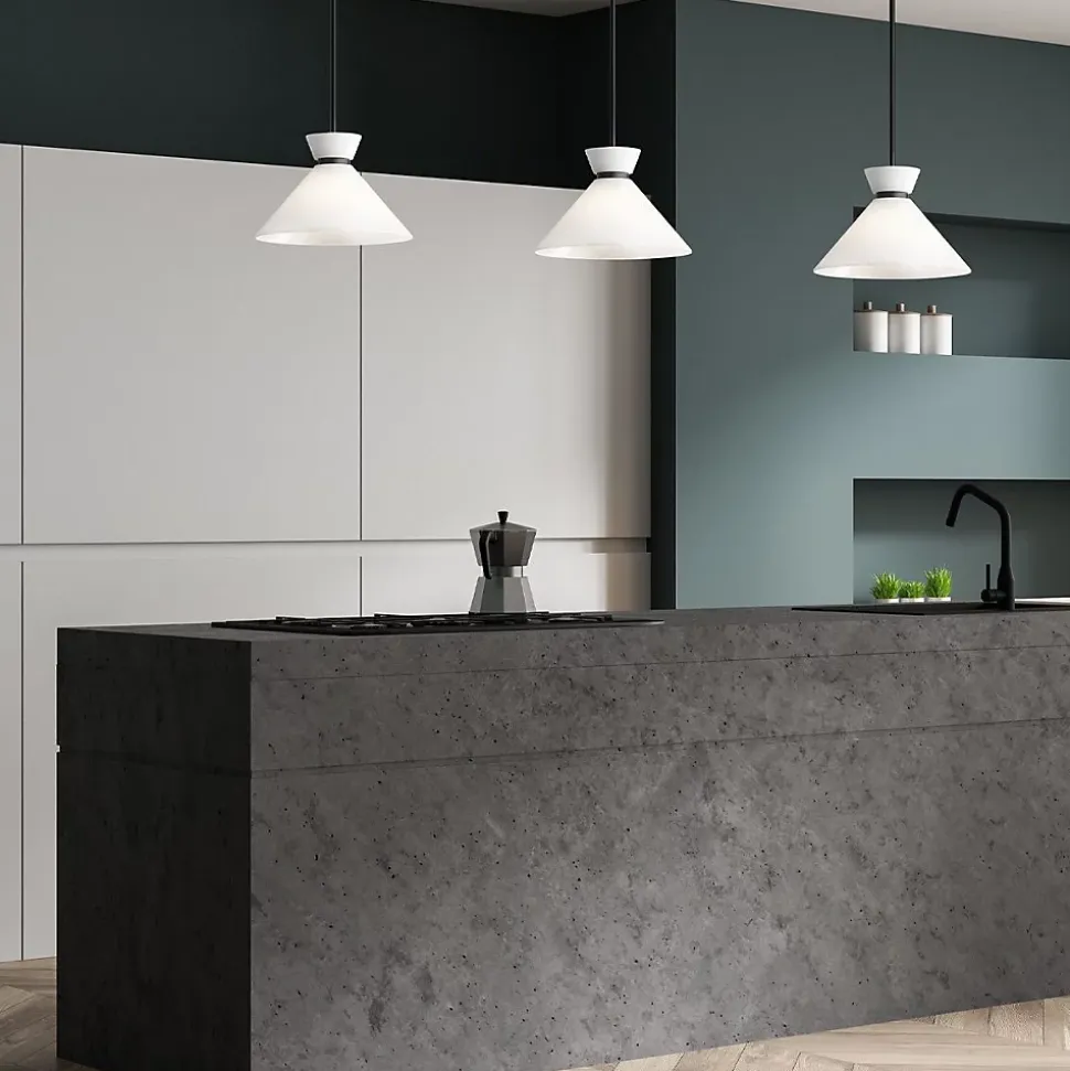Elstead Alora Mood Halston Plafonnier suspendu dôme contemporain noir mat 1x E27Finition : Noir matMatériau : Acier, verre opaleHauteur : 22,9 cmHauteur minimale : 38,1 cmHauteur maximale : 147,4 cmDiamètre : 35,8 cmType d’ampoule : E27Nombre d’ampoules : 1Ampoule incluse : NonIntensité variable : Oui – Ampoules à intensité variable requisesPoids : 1,8 kgPuissance (max.) : 60 W