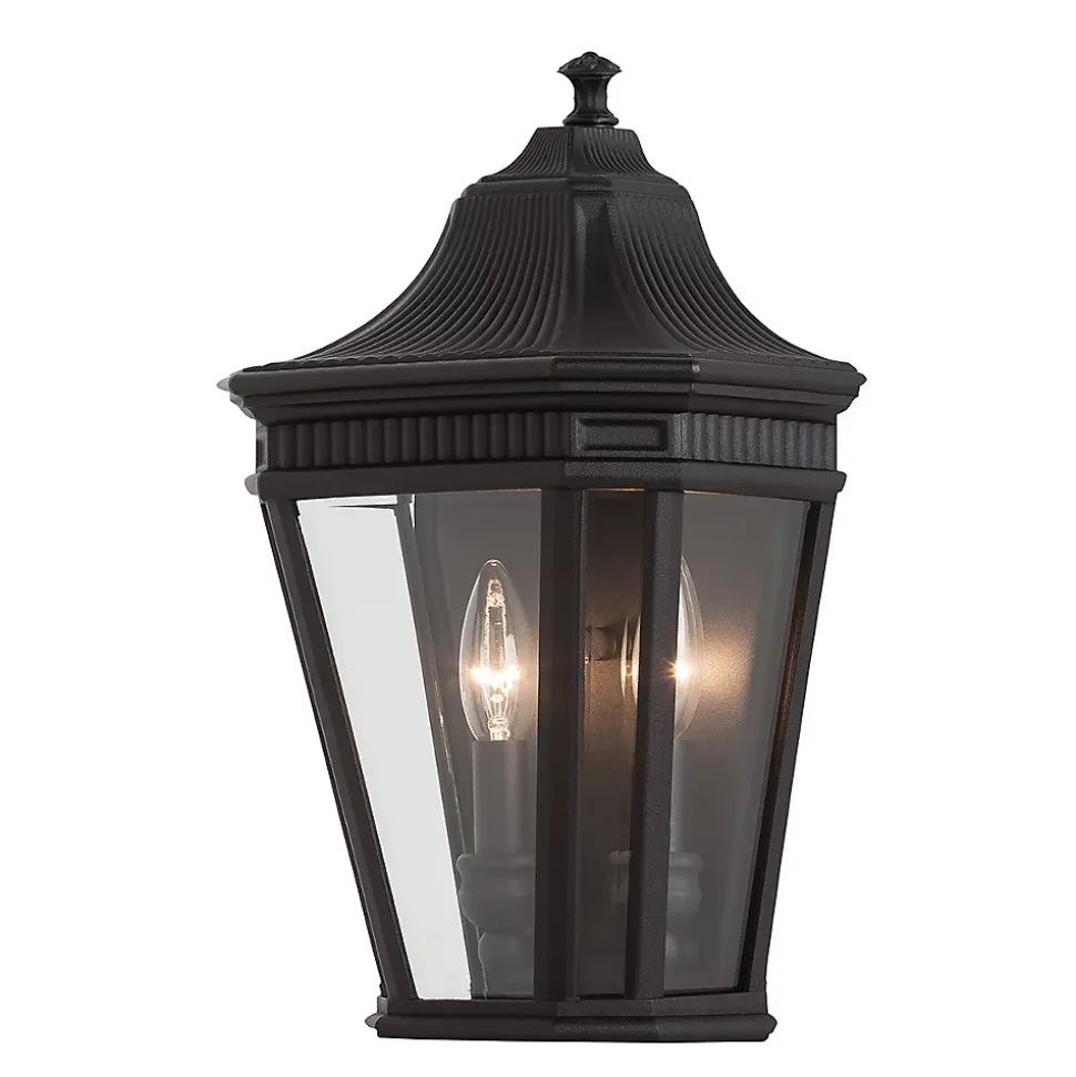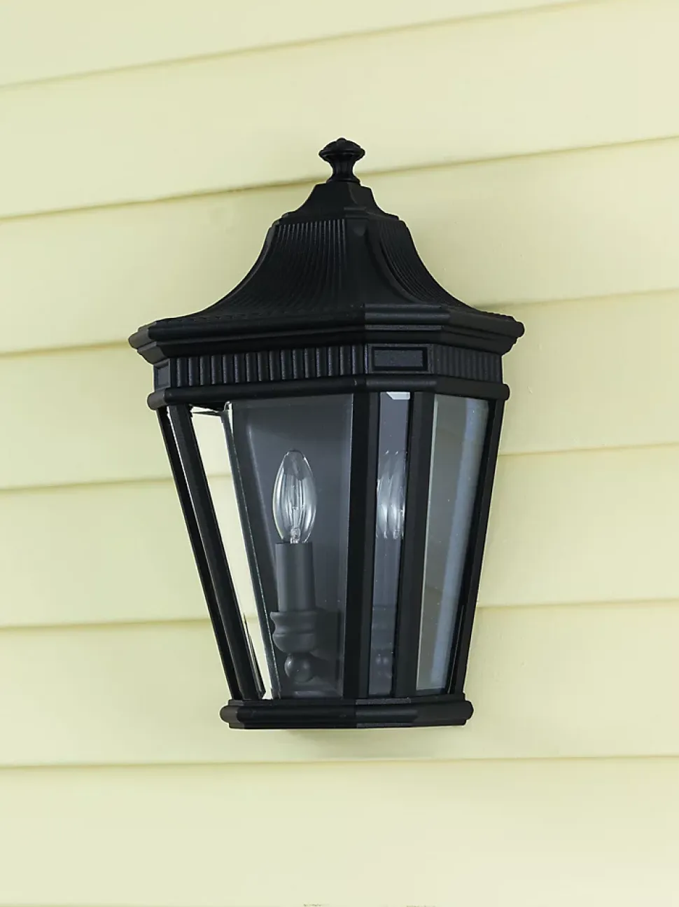Elstead Cotswold Lane – Demi-lanterne murale extérieure à 2 ampoules noir IP44, E14Finition: noir | Classement IP: IP44 | Hauteur (cm): 40,6 | Largeur (cm): 24,1 | Projection (cm): 15,2 | Nbre de lumières: 2 | Type de lampe: E14 | Puissance (max): 60 | Poids (kg): 3,5 | Classe: 1 (mise à la terre) | Ampoule incluse: non
