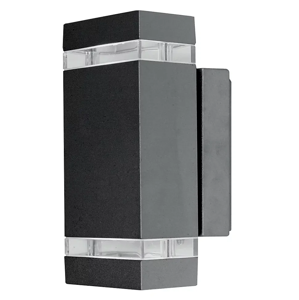 Elstead Jannik – Applique murale d’extérieur à 2 lumières LED Graphite IP44Finition: Graphite | Matériau: aluminium | Classement IP: IP44 | Hauteur (cm): 23,5 | Largeur (cm): 11 | Projection (cm): 10,2 | Nbre de lumières: 2 | Type de lampe: LED intégrée | Puissance (max): 7.6