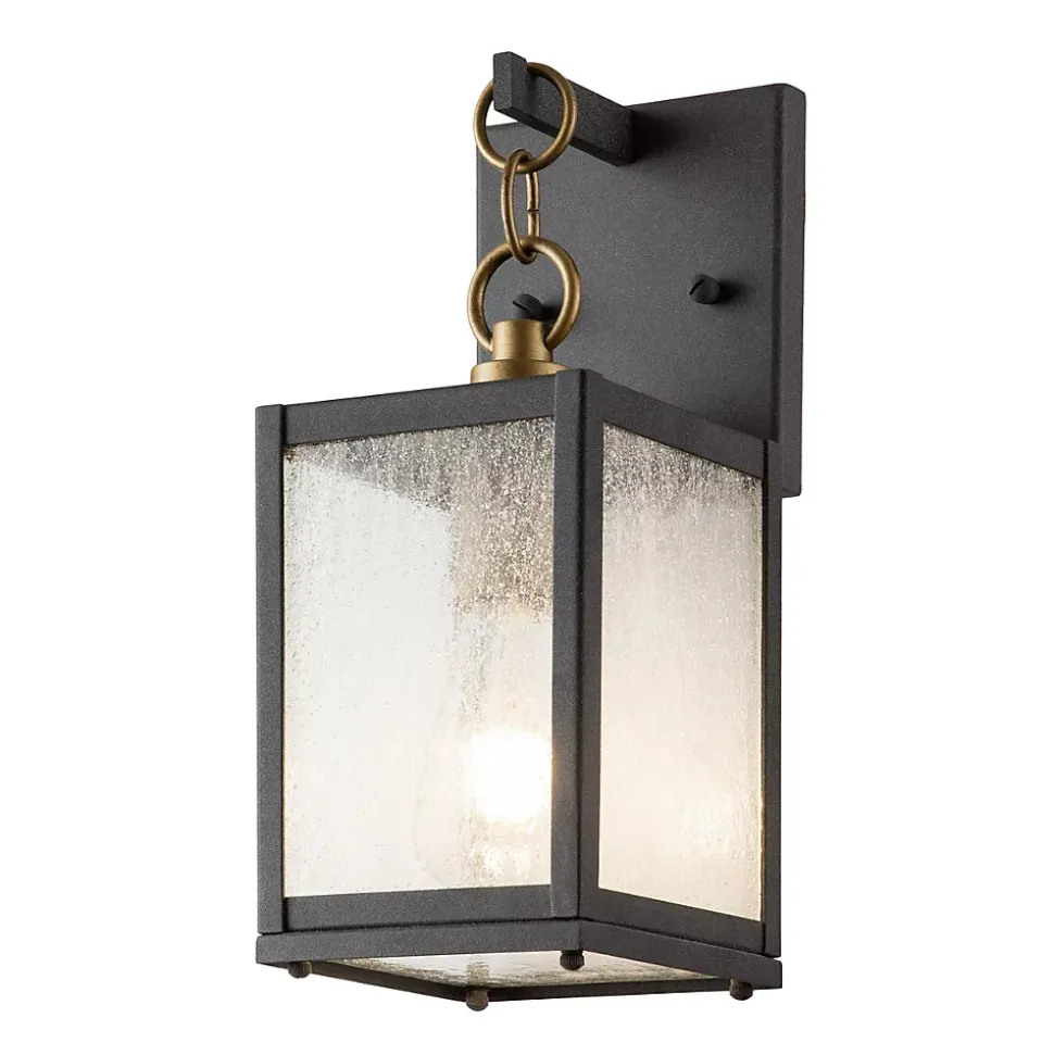 Elstead Kichler Lahden Lanterne Murale Extérieure Zinc Vieilli, IP44Fini : Zinc patinéMatériau : aluminium, verre granuleux transparentClassement IP : IP44Hauteur : 31,6 cmLargeur : 12,7 cmProfondeur : 14,3 cmType de lampe : E27Nombre de lampes : 1Ampoule incluse : NonPuissance (max): 60W