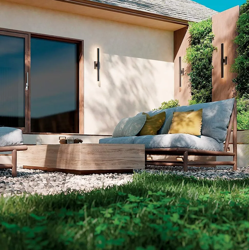 Elstead Kichler Nocar Grande applique murale d’extérieur moderne à LED, noire texturée contemporaine, 3 000 K, IP44Finition : Noir texturéMatériau : AluminiumIndice de protection : IP44Hauteur : 76,2 cmLargeur : 12,7 cmProjection : 9 cmType de lampe : LED intégréeIntensité variable : Non variableKelvin : 1 800 lmLumens : 3 000 KPoids : 1,04 kgPuissance (max.) : 39 W