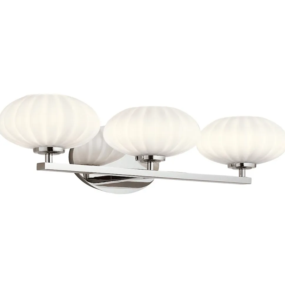 Quintiesse Kichler Pim Lampe Murale de Salle de Bain Matériel: Acier, Verre Opaline Gravé Satiné Indice de Protection: IP44 Hauteur: 15.4cm Largeur: 63.5cm Profondeur: 21.9cm Type de Lampe: G9 Nbr. de Lampes: 3 Ampoule Incluse: Oui Kelvin: 3000k Lumens: 900Lm Puissance (max): 3W