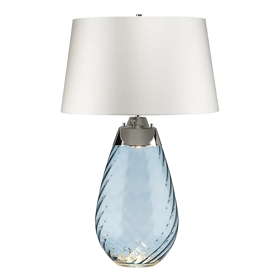 Elstead Lena – Grande lampe de table bleue à 2 ampoules avec abat-jour blanc cassé, verre teinté bleu, abat-jour blanc cassé, E27 | Fini: verre teinté bleu / abat-jour blanc cassé | Matériel: Verre | Matériel: Métal | Matériel: Satin lisse | Hauteur (cm): 74 | Diamètre (cm): 46 | Nombre de lumières: 1 | Type de lampe: E27 | Puissance (max): 60W | Ampoule incluse: GU10 LED | Kelvin: 3000k | Lumens: 620Lm